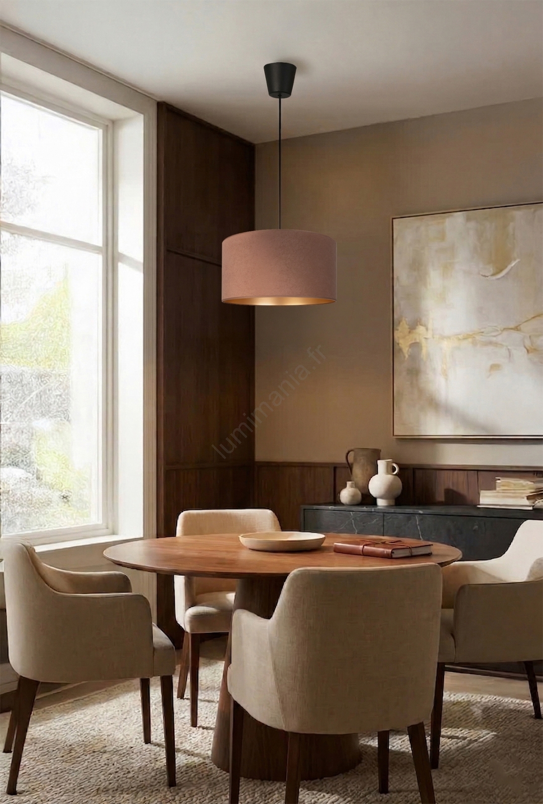 Brilagi - Suspension sur câble VELVET 1xE27/60W/230V Ø 40 cm beige/doré caractérise un design agréable et fonctionnel.  Une ampoule à culot E27 convient pour ce luminaire. Ici, vous pouvez acheter d'autres ampoules à des prix avantageux. Vous aurez un ajout intéressant dans votre intérieur.