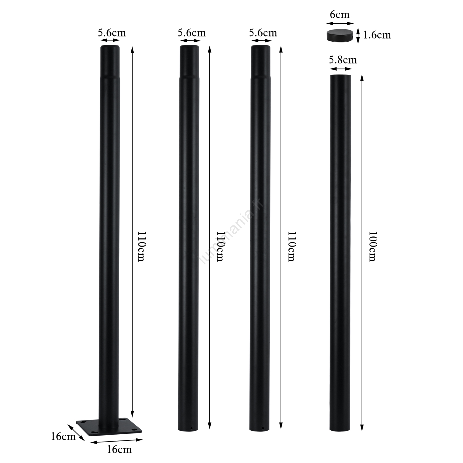 Brilagi - Tige métallique pour poteau d'éclairage extérieur URBAN 4 m, Ø 58 mm, noire