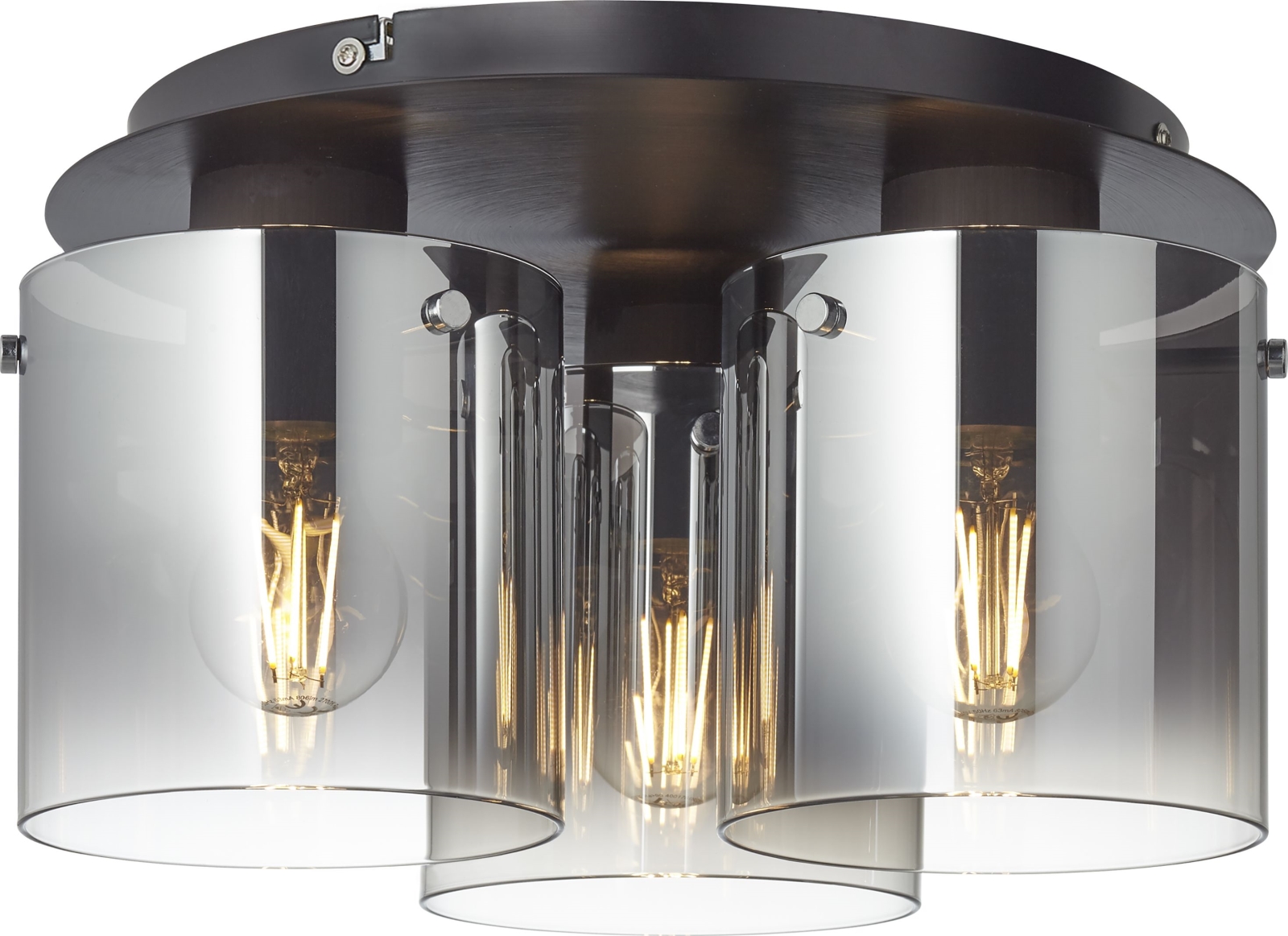 Brilliant - Plafonnier BETH 3xE27/60W/230V Ø 37 cm noir/fumé caractérise un design agréable et fonctionnel.  Une ampoule à culot E27 convient pour ce luminaire. Ici, vous pouvez acheter d'autres ampoules à des prix avantageux. Vous aurez un ajout intéressant dans votre intérieur.