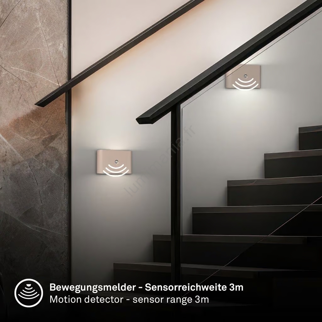• Briloner 3878011 - Applique murale LED rechargeable avec capteur de mouvement et crépusculaire CHAT LED/3W/5V 2000 mAh beige