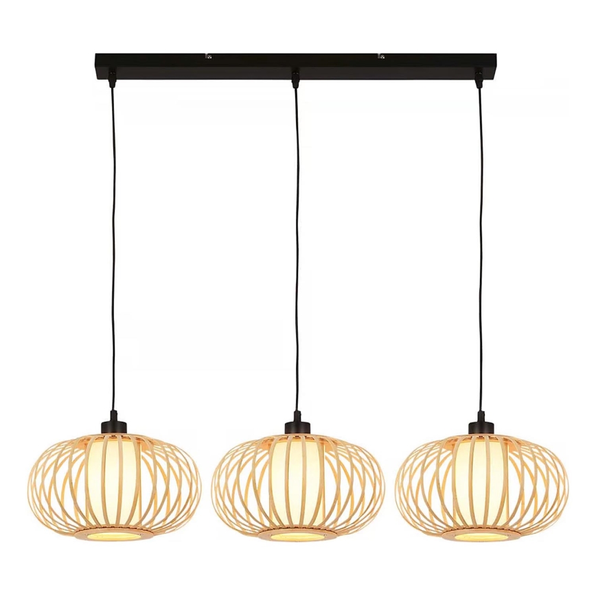 Briloner 4759031 - Suspension sur câble 3xE27/10W/230V noir/bambou