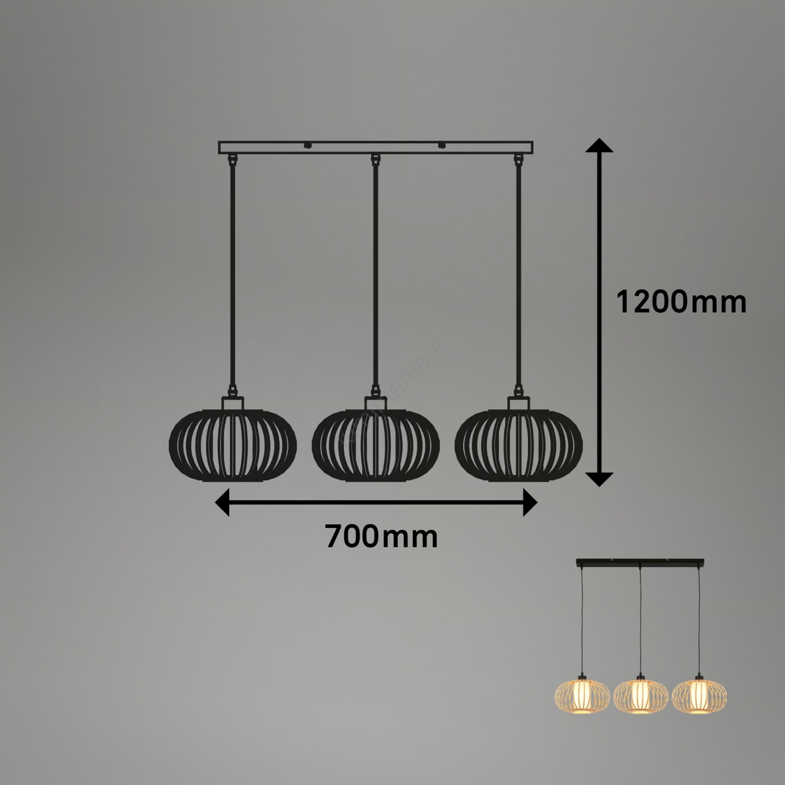 Briloner 4759031 - Suspension sur câble 3xE27/10W/230V noir/bambou caractérise un design agréable et fonctionnel.  Une ampoule à culot E27 convient pour ce luminaire. Ici, vous pouvez acheter d'autres ampoules à des prix avantageux. Vous aurez un ajout intéressant dans votre intérieur.