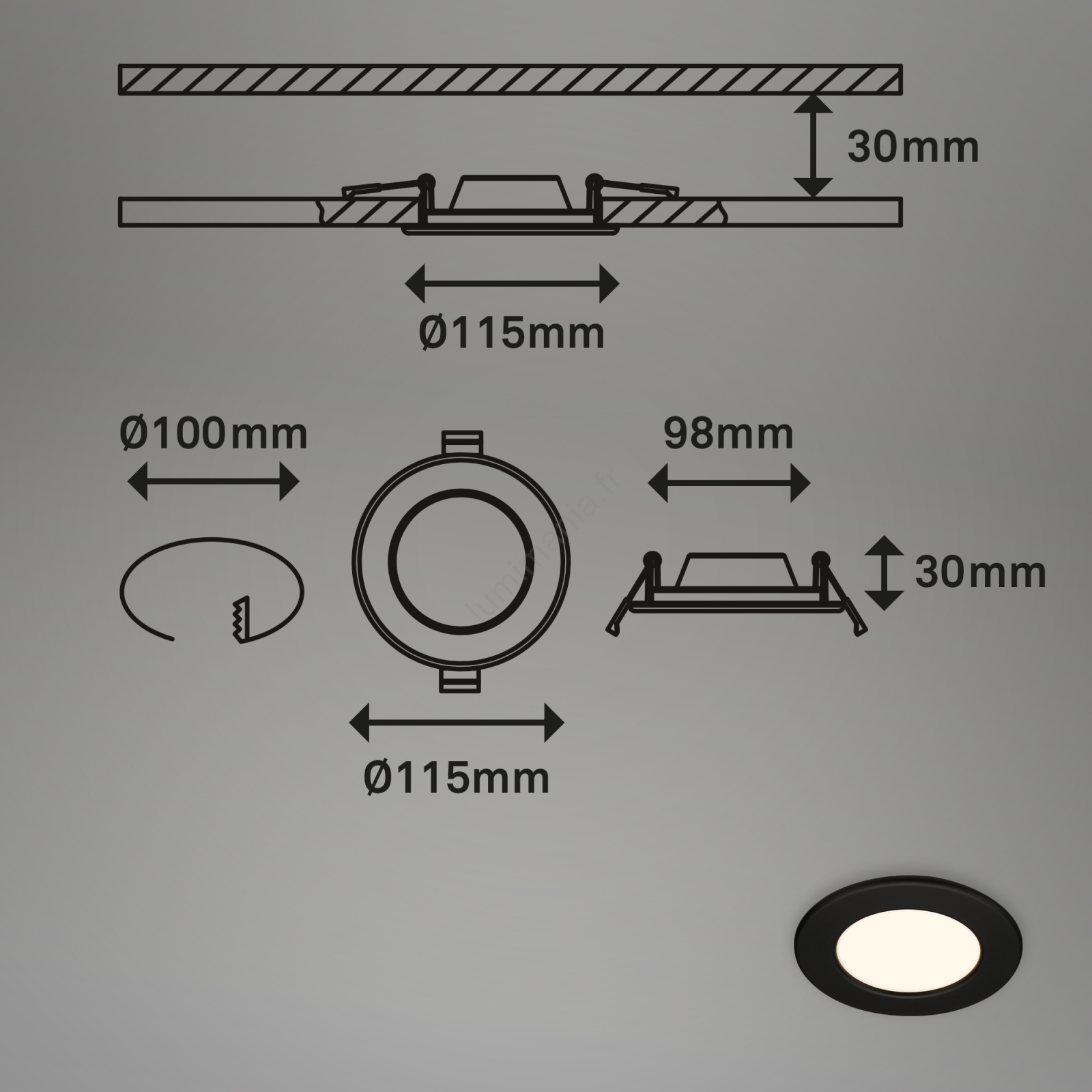 • Briloner 7049015 - Plafonnier encastré LED dimmable pour salle de bains LED/6W/230V 3000K IP44 noir