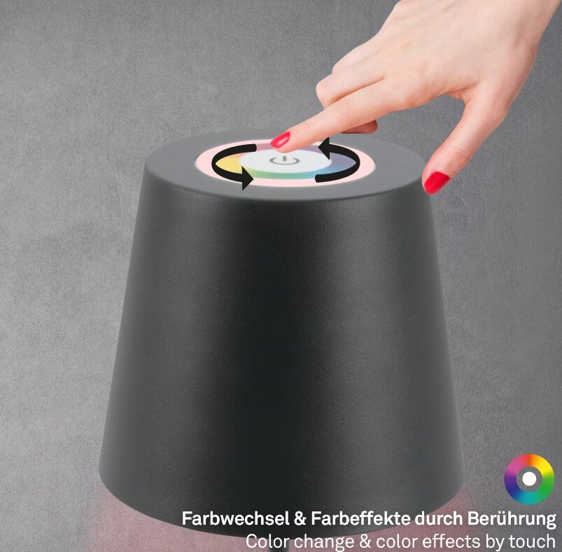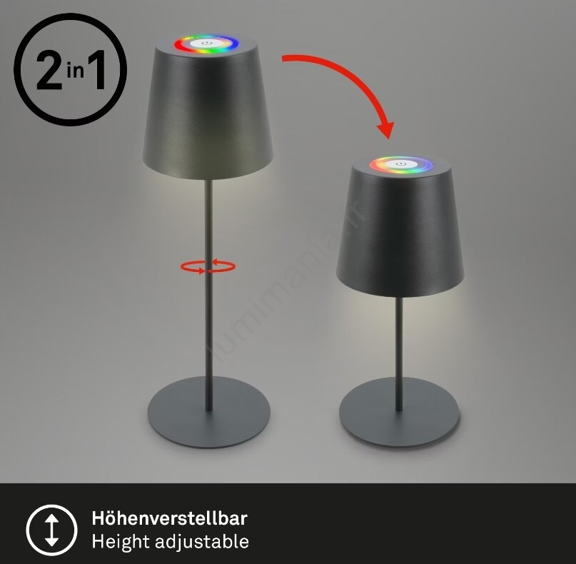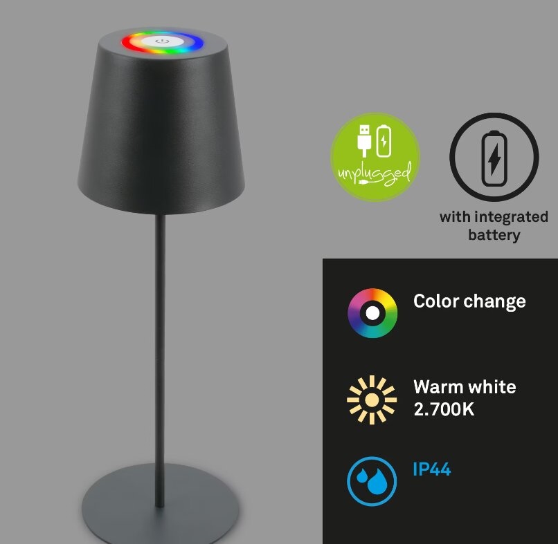 Briloner 7507015 - Lampe de table d'extérieur rechargeable LED RGB dimmable 2 en 1 LED/2,5W/5V IP44 1200 mAh anthracite