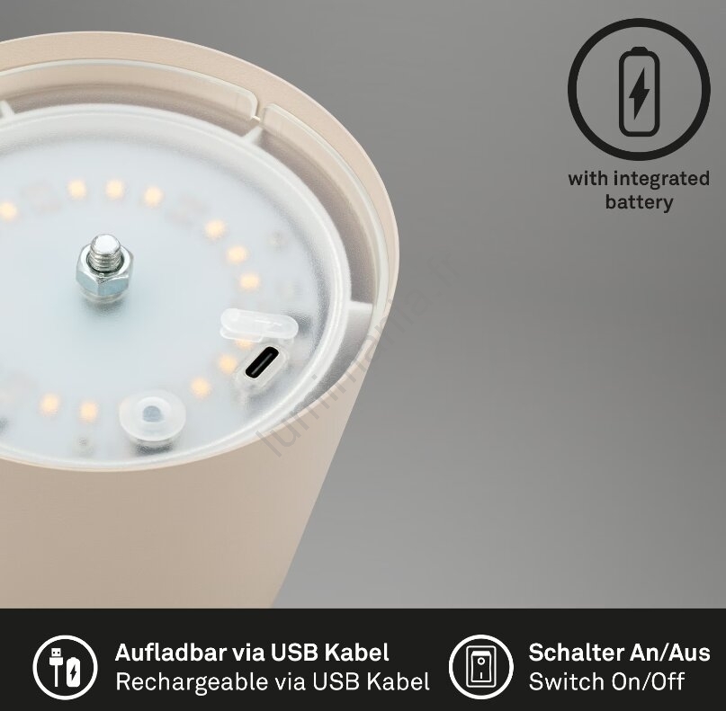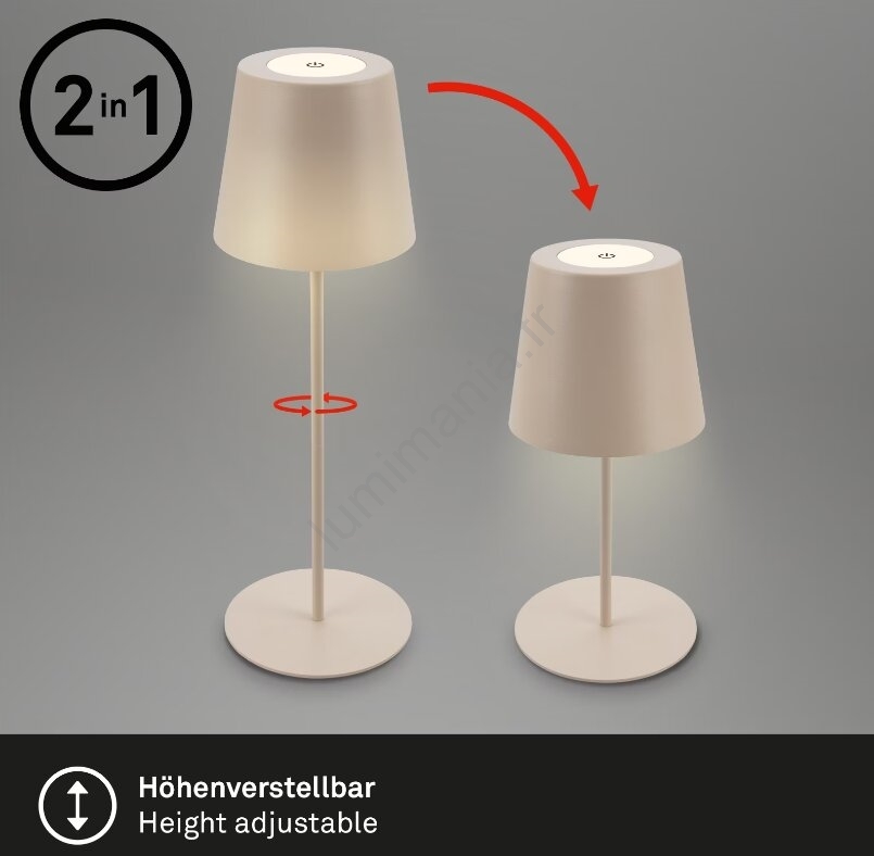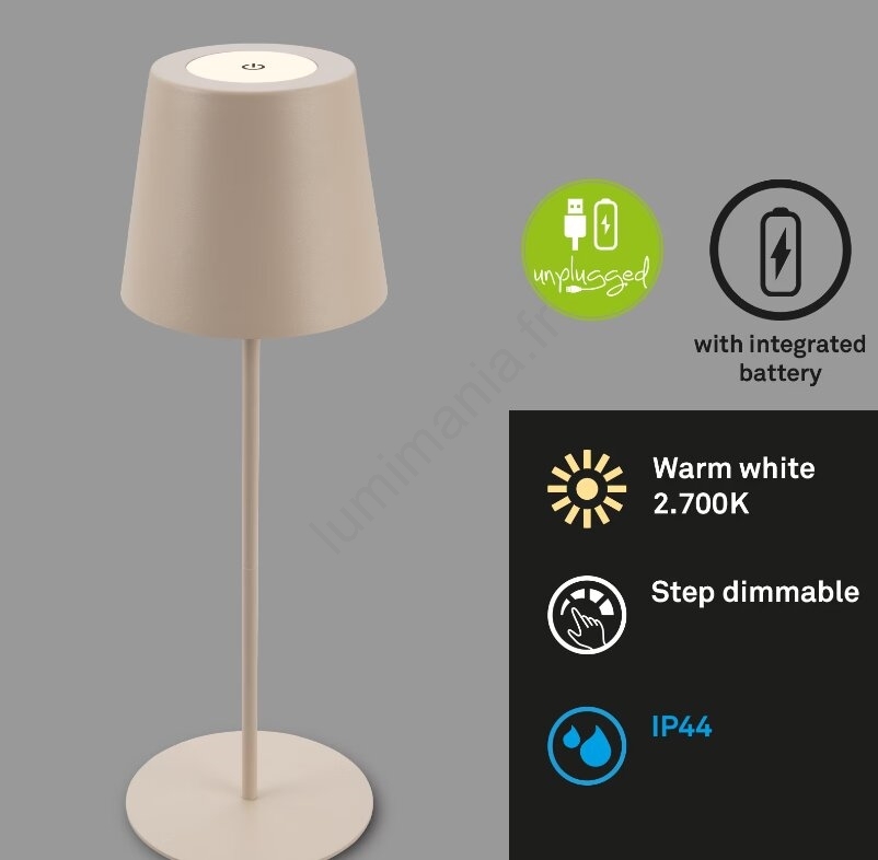 Briloner 7508011 - Lampe de table d'extérieur rechargeable LED dimmable 2 en 1 LED/2,5W/5V IP44 1200 mAh beige