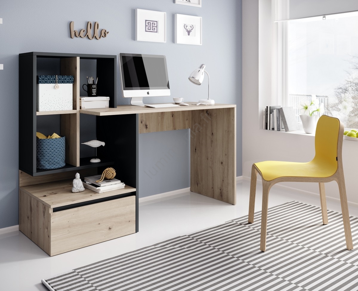Bureau avec étagère MARLO chêne artisan/anthracite
