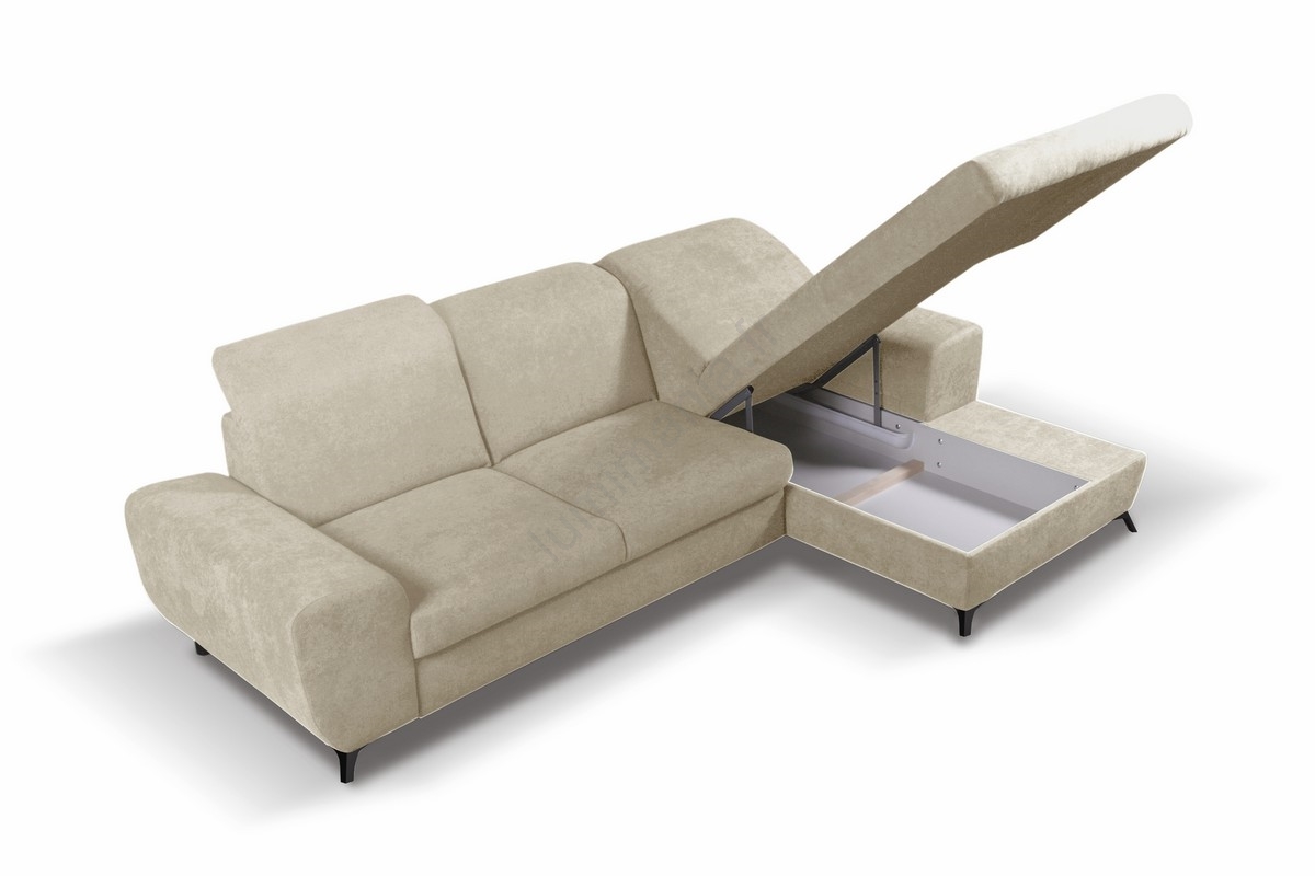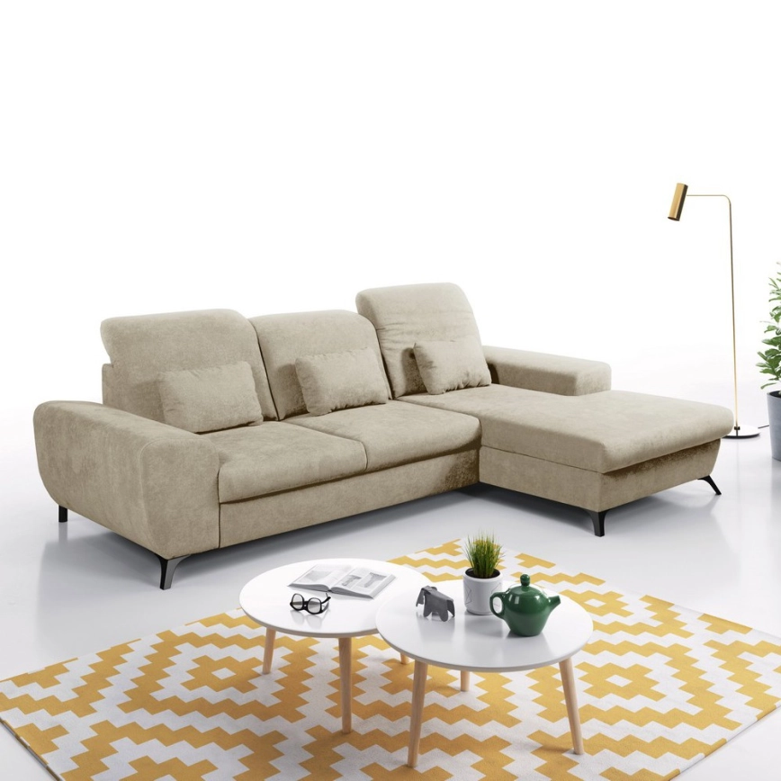 Canapé d'angle convertible rembourré en L ALTA avec coffre de rangement, angle droit, beige