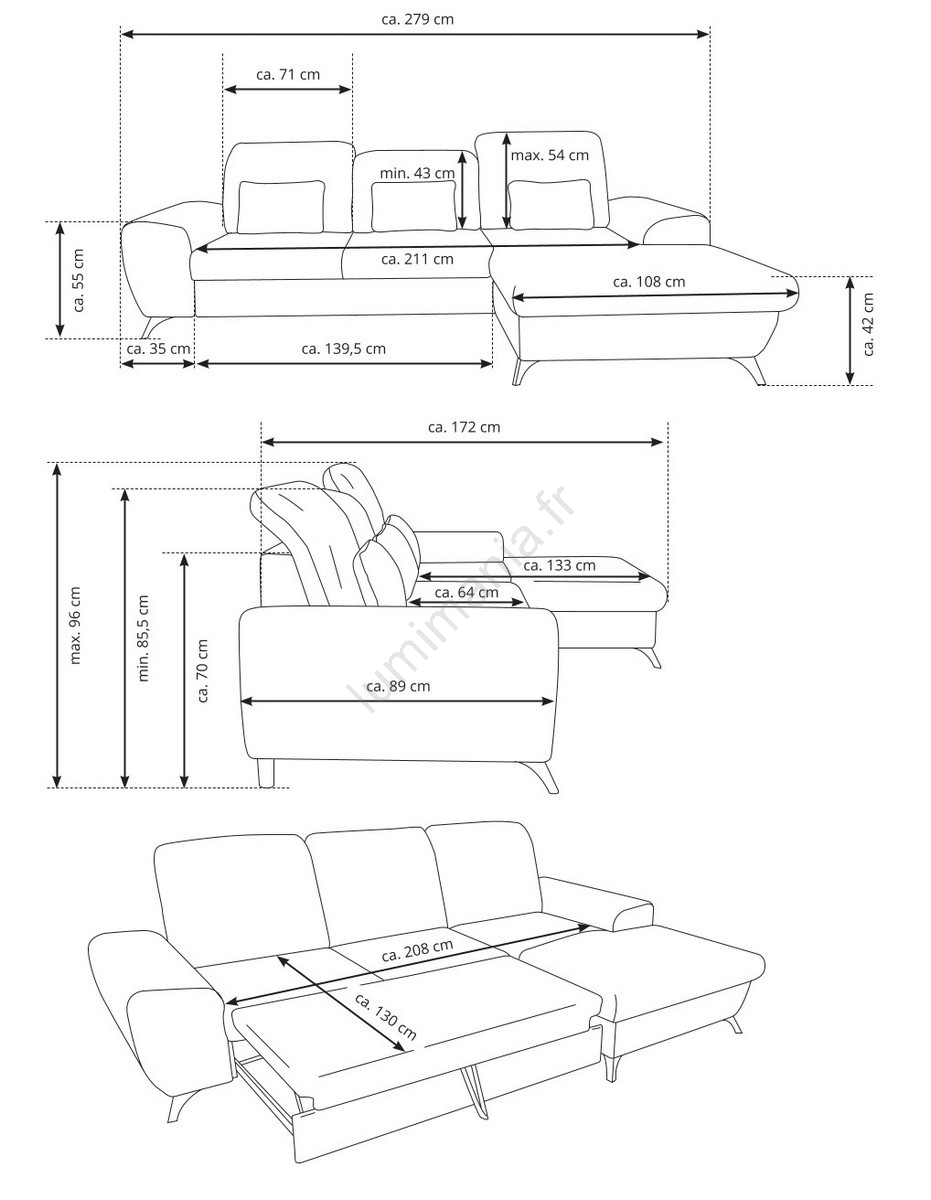 • Grâce à la fonction couchage (type dauphin), il se transforme facilement en un espace de couchage confortable.