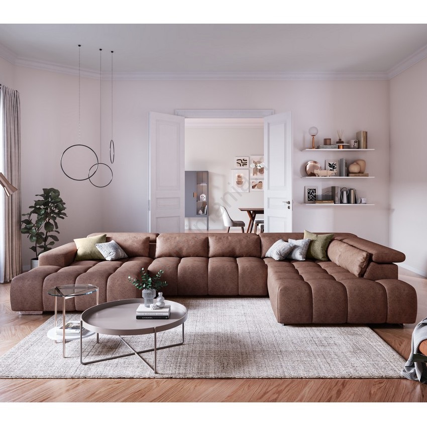 Canapé d'angle en U TROPEA avec appuie-têtes, version droite, couleur marron