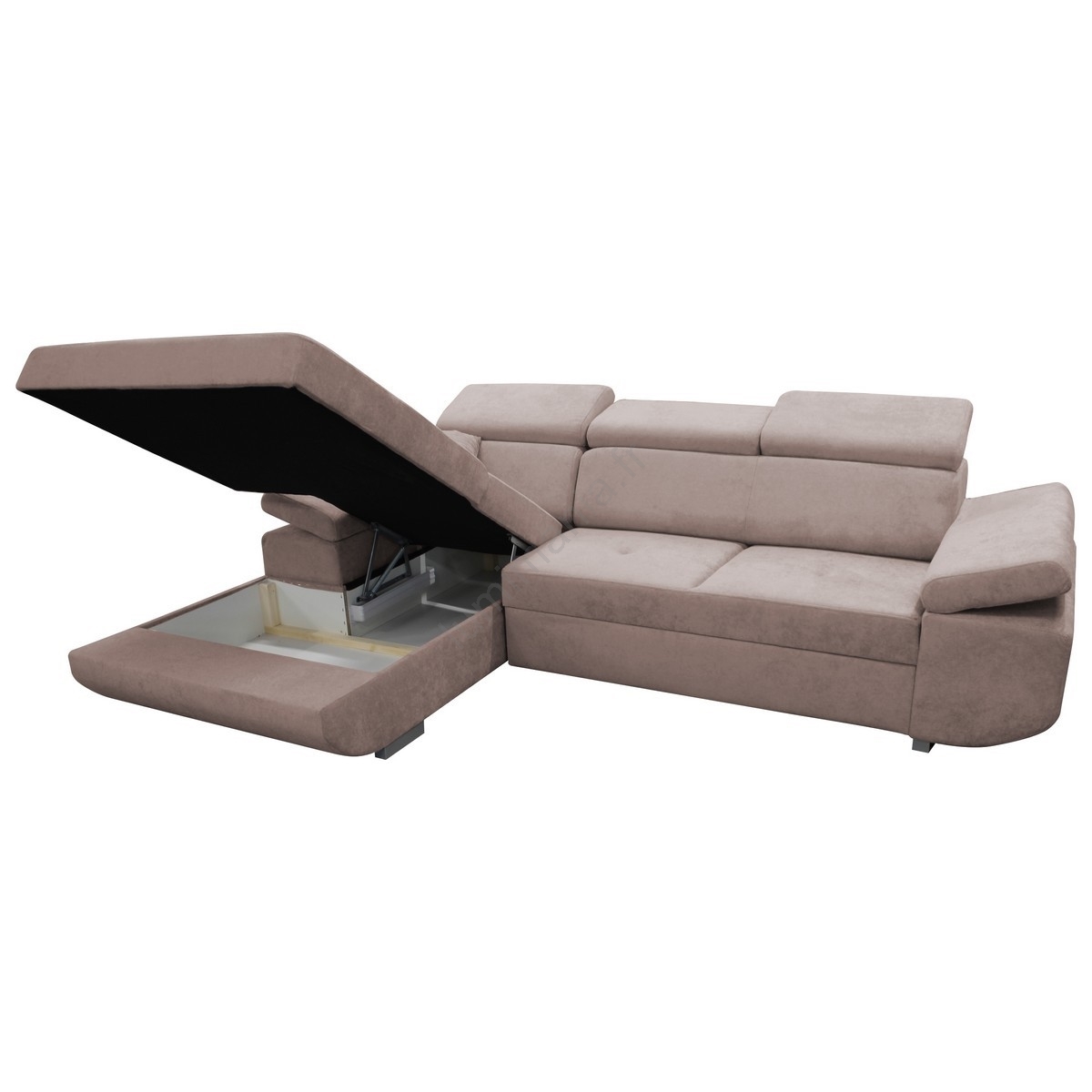 Canapé d'angle convertible CASTELO en L, côté gauche, beige, avec coffre de rangement