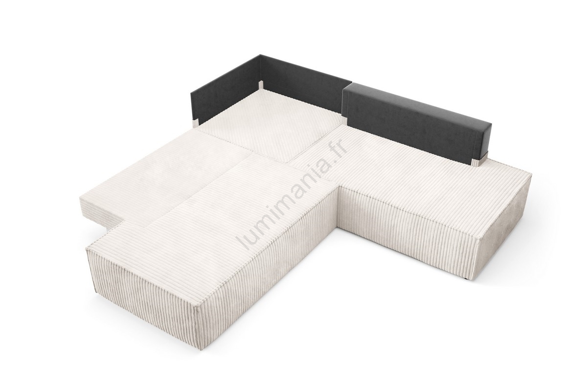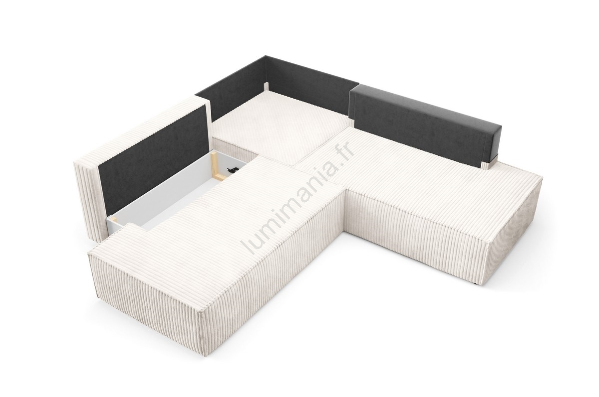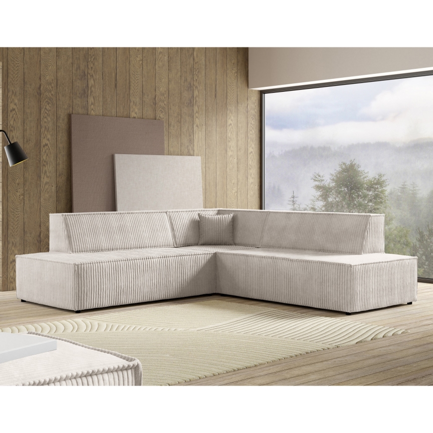 Canapé d'angle convertible TERAMO en L, coffre de rangement, angle droit, beige