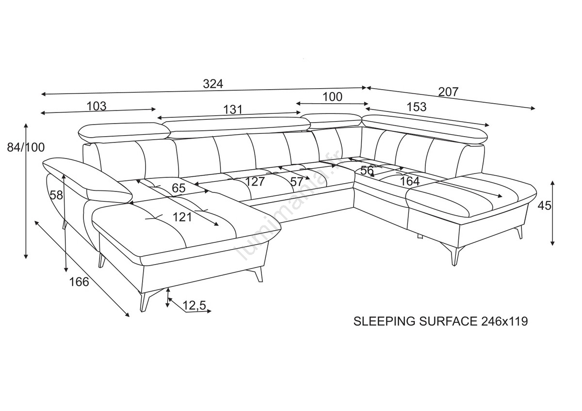 • Le canapé est conçu avec un dossier de 100 cm de hauteur, assurant un excellent soutien du dos et de la tête.