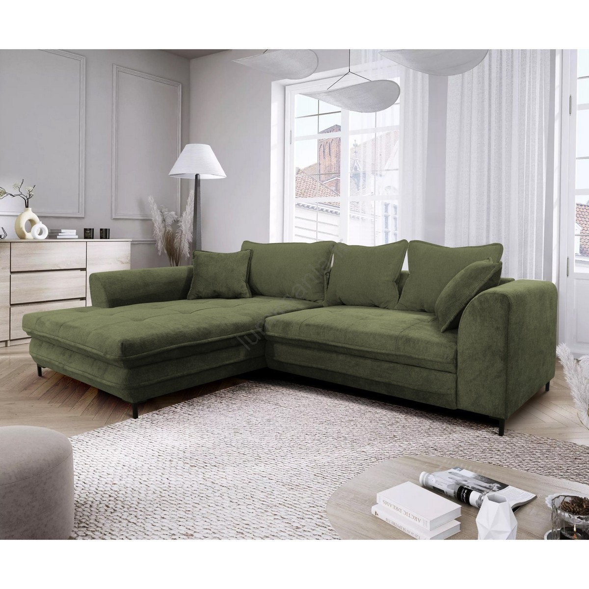 Canapé d'angle convertible en L avec coffre de rangement LAGOA, côté gauche, vert