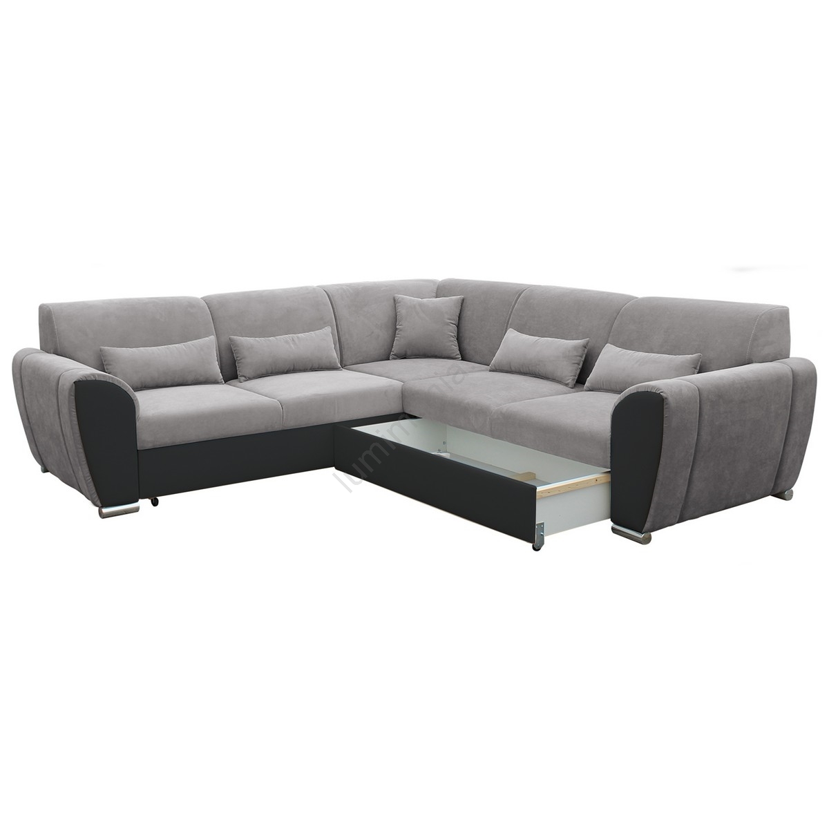 Canapé d'angle convertible VISEU en L avec coffre de rangement, angle droit, gris/noir