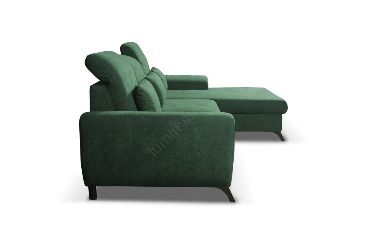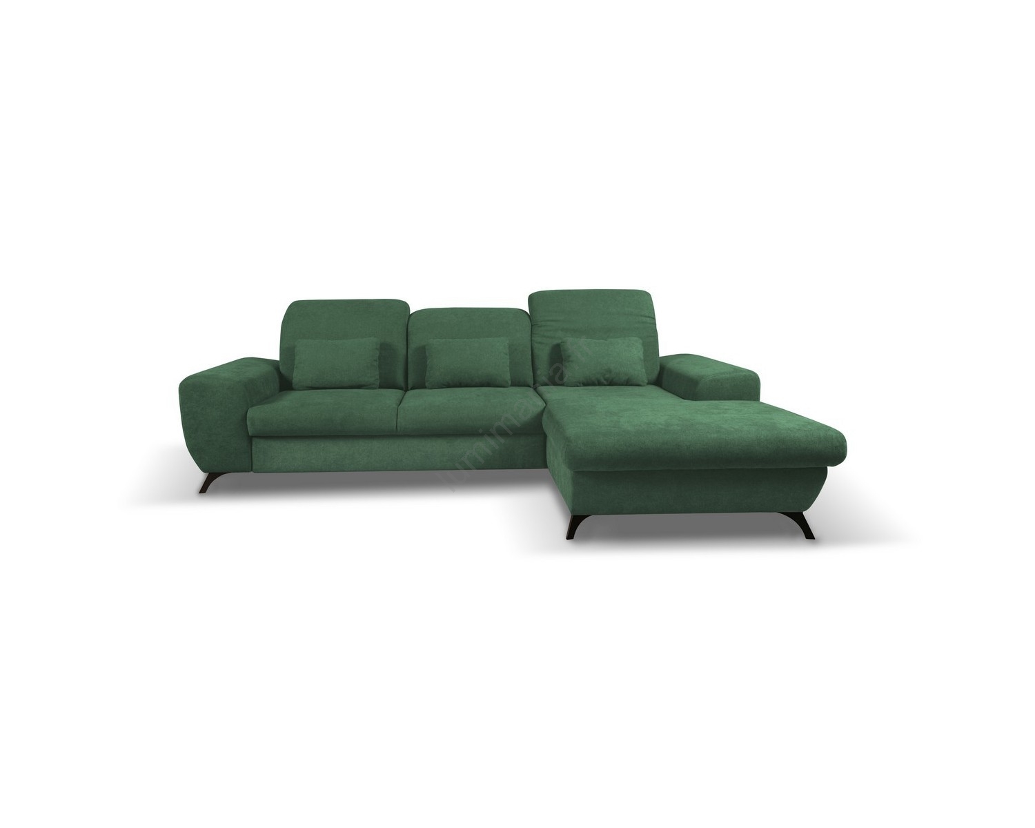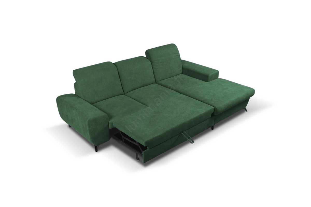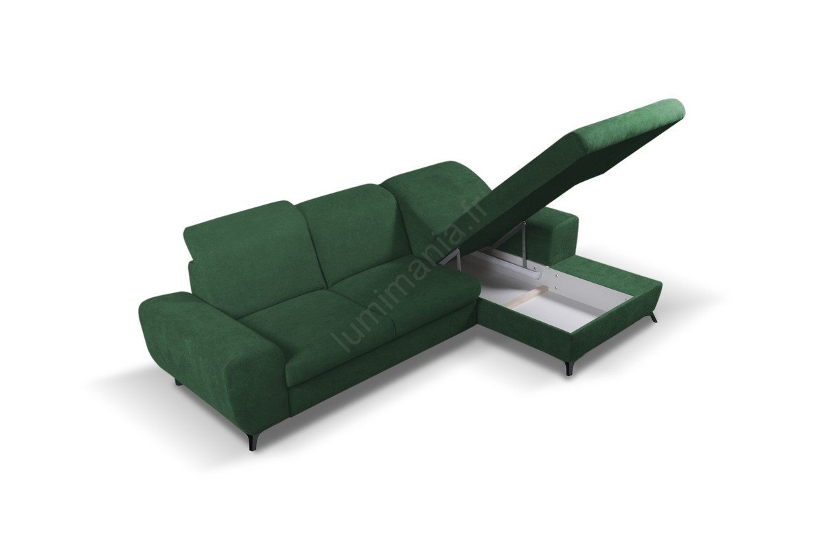 Canapé d'angle convertible ALTA en L, version droite, tapissé, avec coffre de rangement, vert
