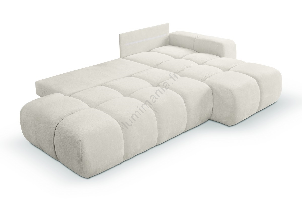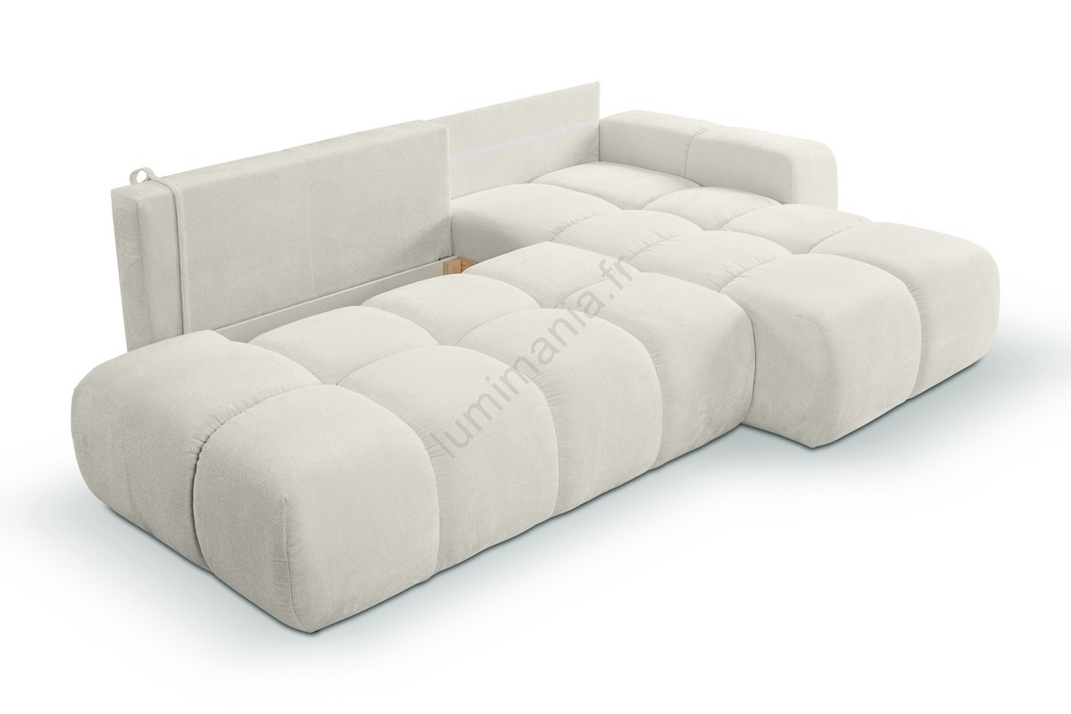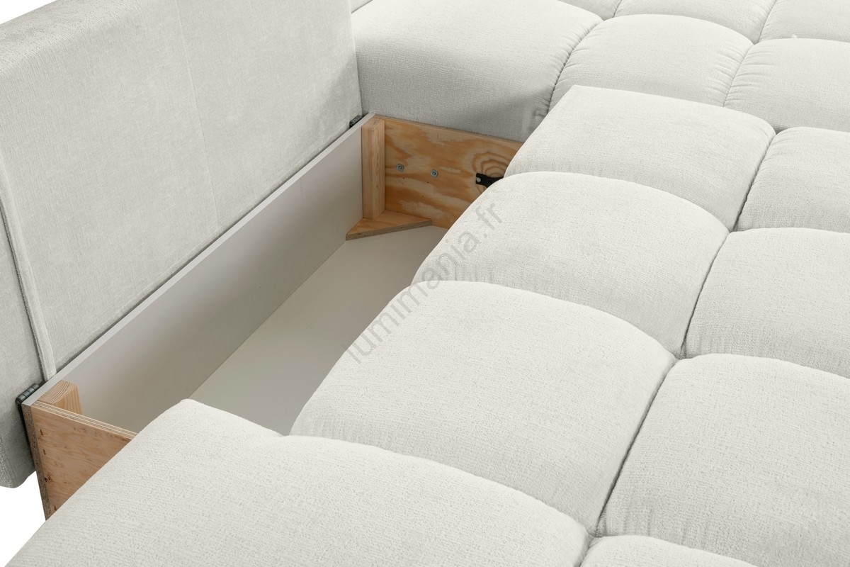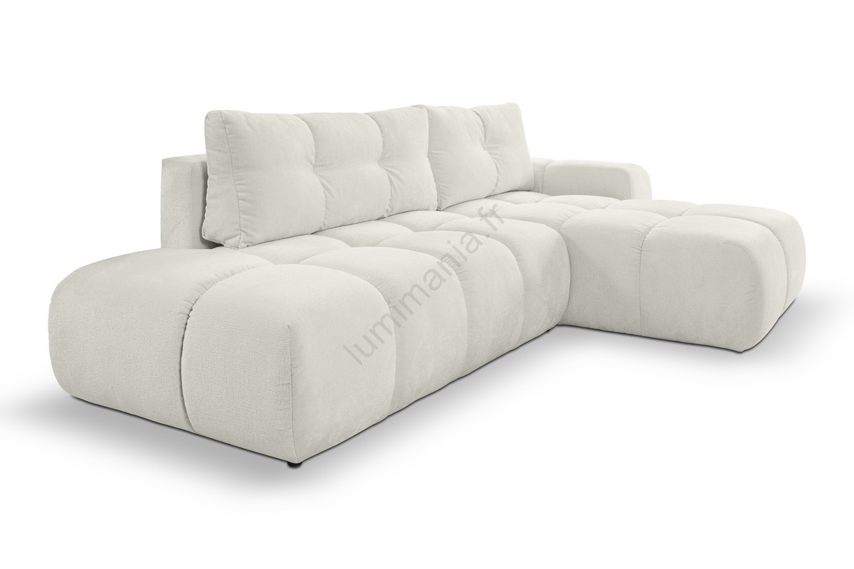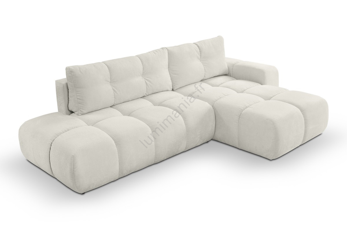 Canapé d'angle convertible tapissé ALMADA en L, côté droit, beige
