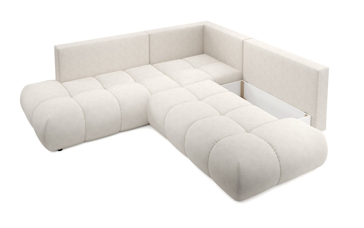 Canapé d'angle convertible ALMADA en L, avec coffre de rangement, côté droit, beige