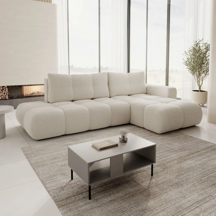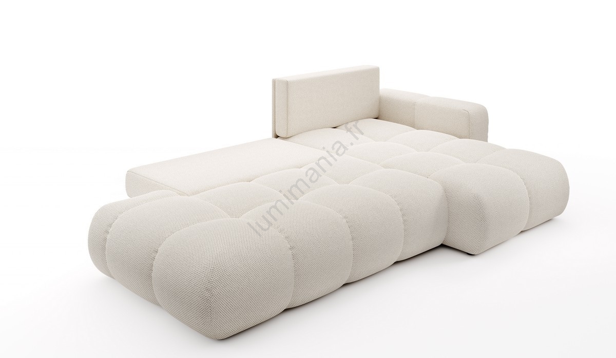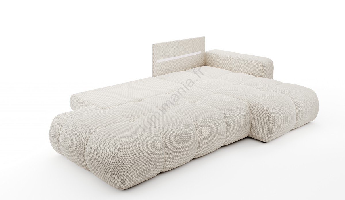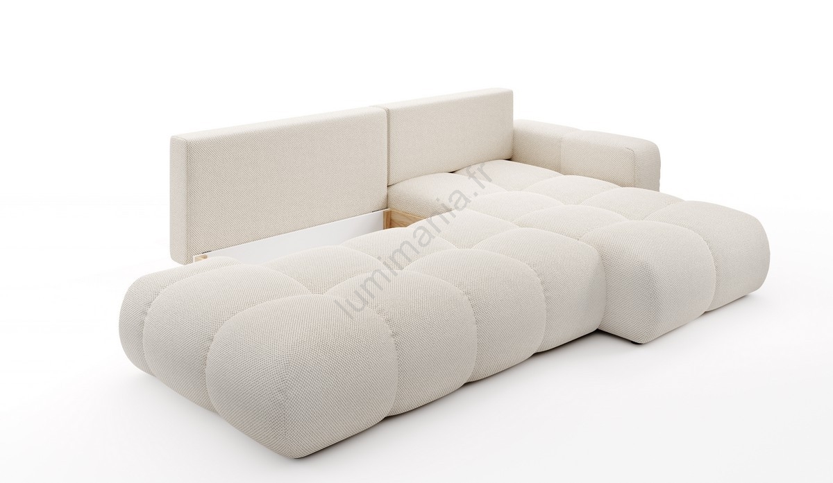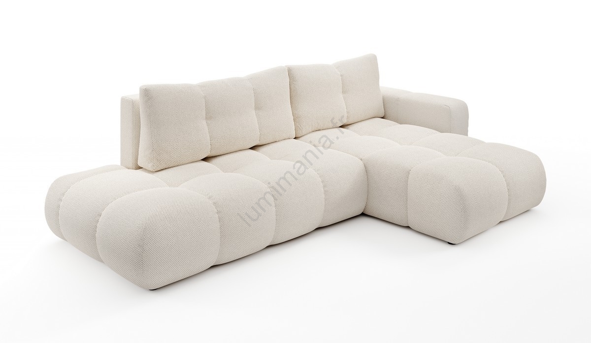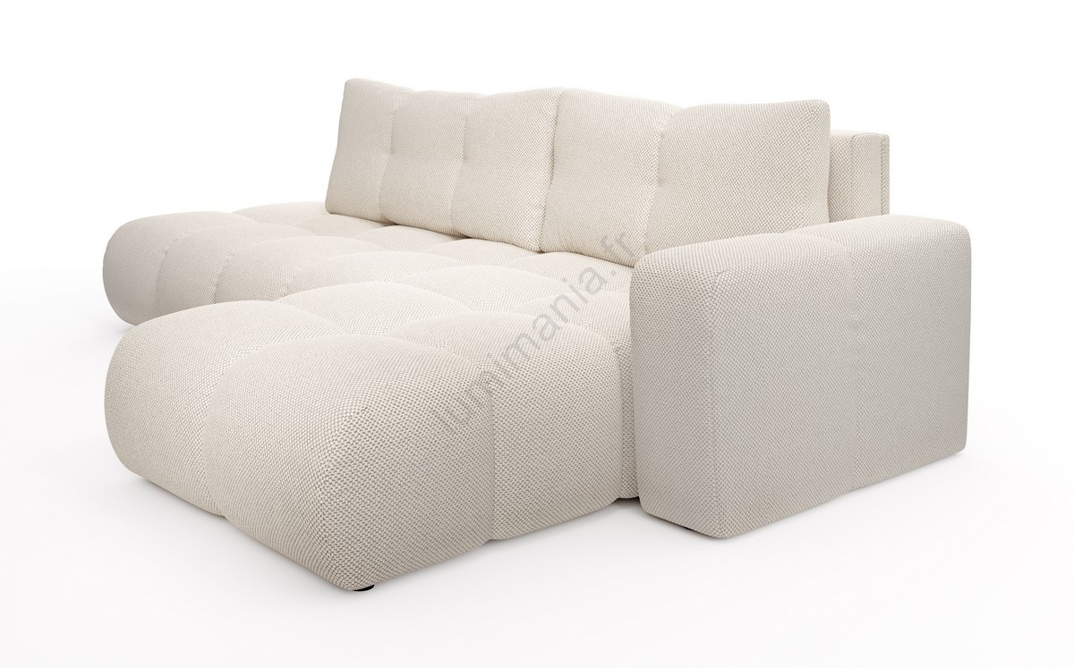 Canapé d'angle convertible ALMADA en L, rembourré, avec coffre de rangement, angle droit, beige clair