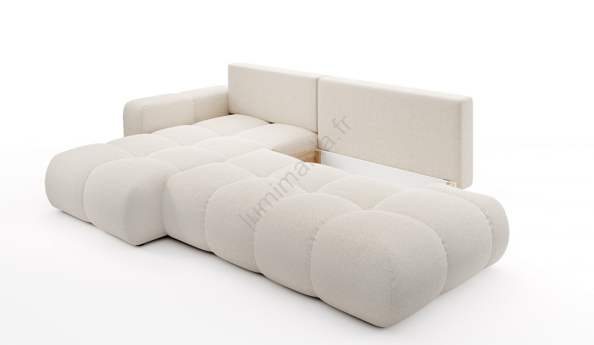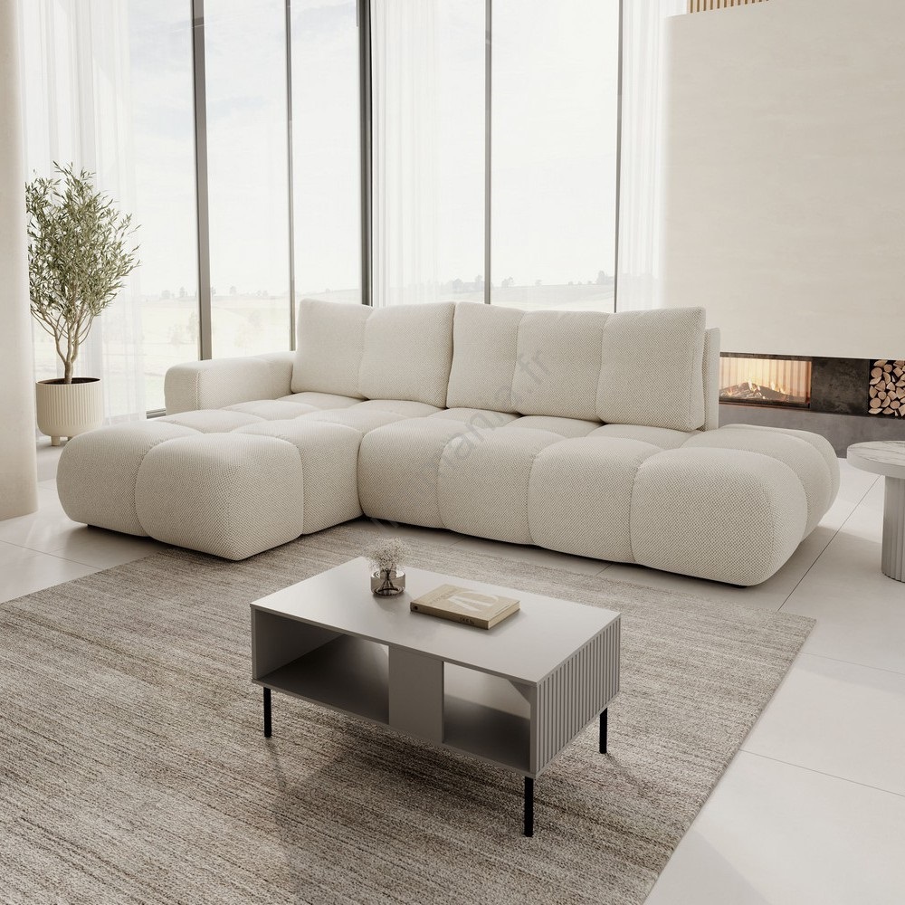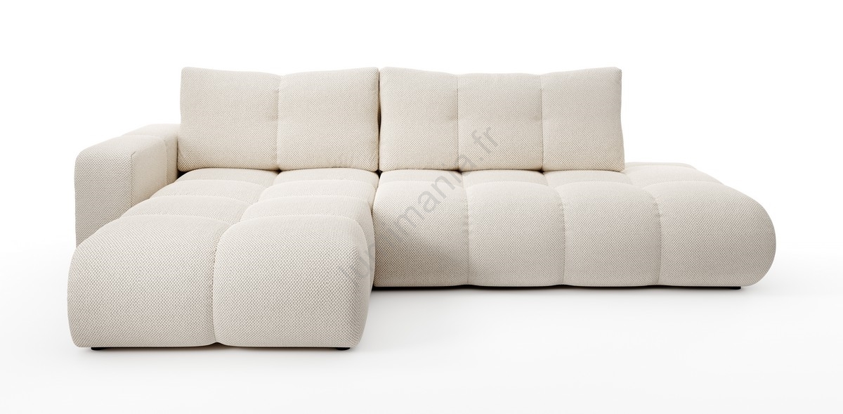 Canapé d'angle convertible en L ALMADA, tapissé, côté gauche, beige clair