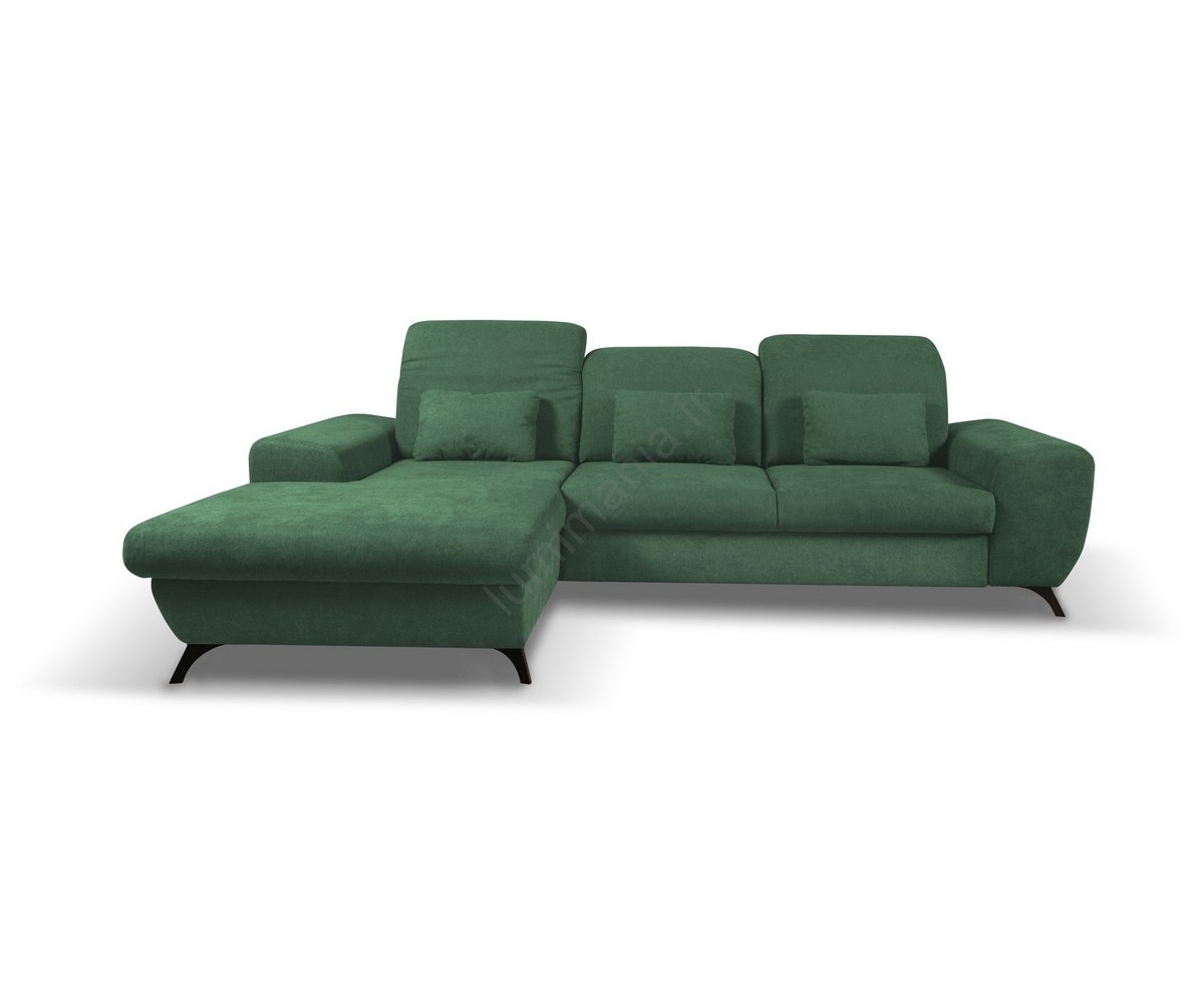 Canapé d'angle convertible rembourré ALTA en L, avec coffre de rangement, version gauche, vert