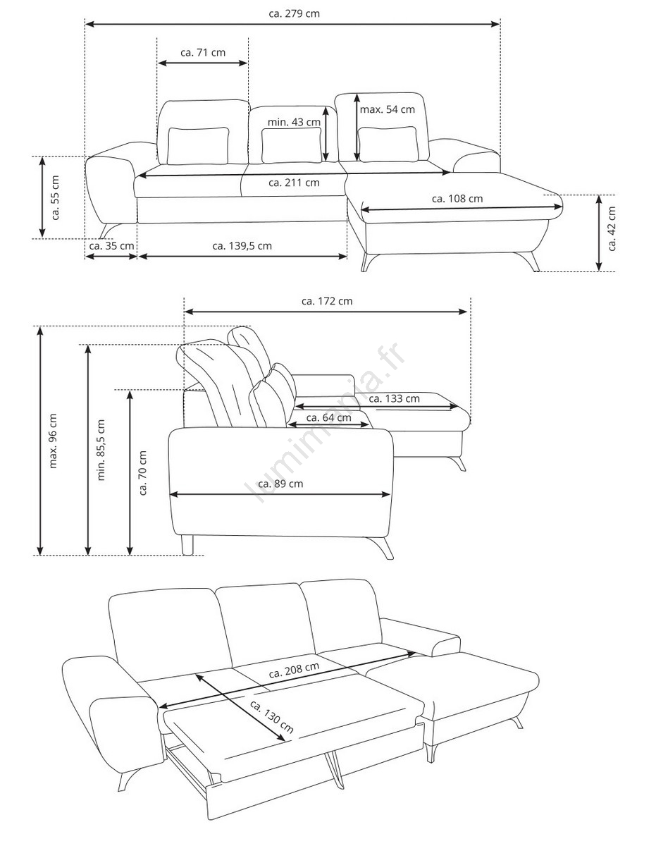 • Grâce à la fonction lit (type dauphin) il se transforme facilement en un espace de couchage confortable.