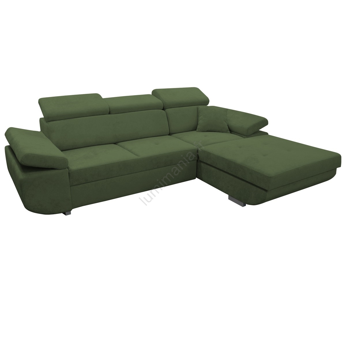 Canapé d'angle convertible en L CASTELO avec coffre de rangement, angle droit, vert