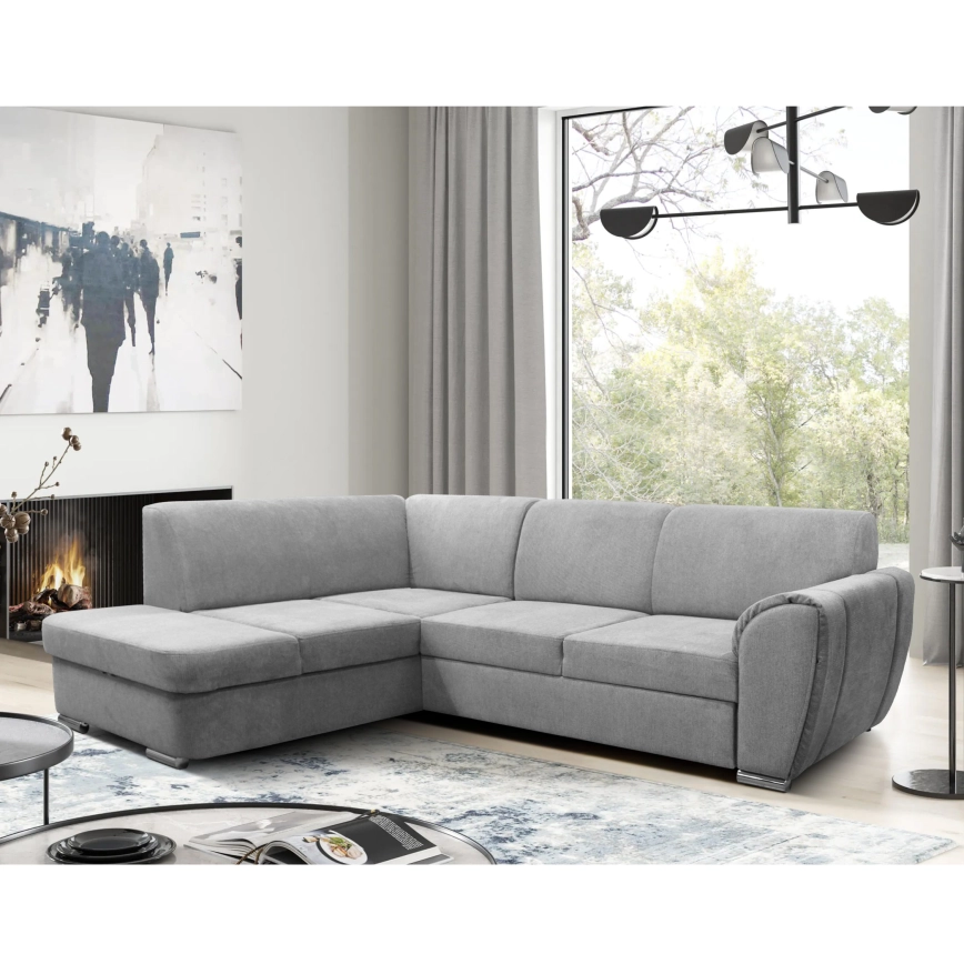 Canapé d'angle convertible en L SERPA avec coffre de rangement, angle gauche, gris