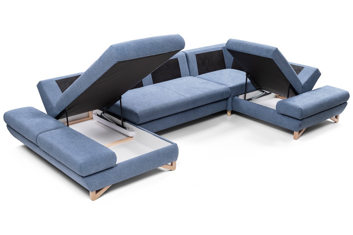 Canapé d'angle rembourré convertible en U avec coffre de rangement AVESTA, bleu