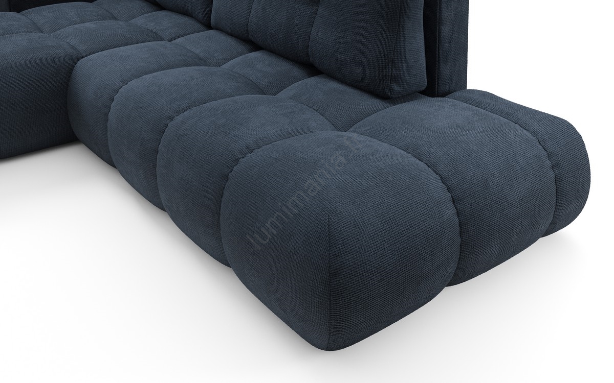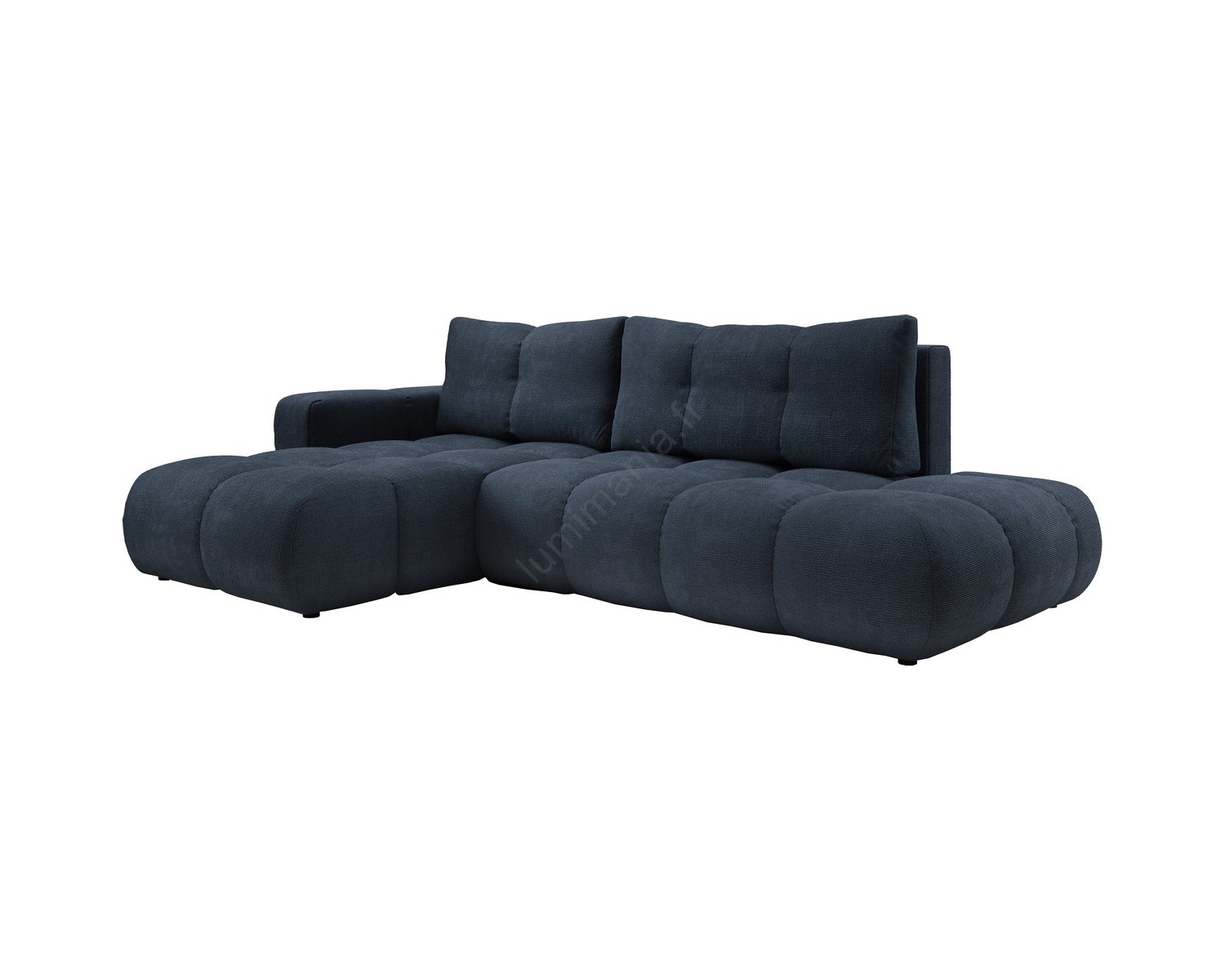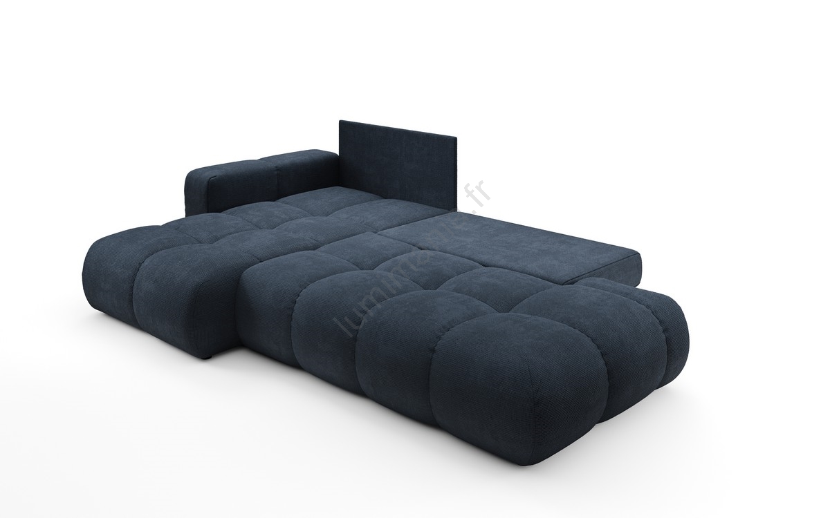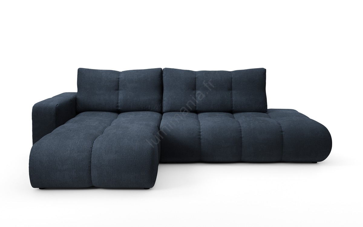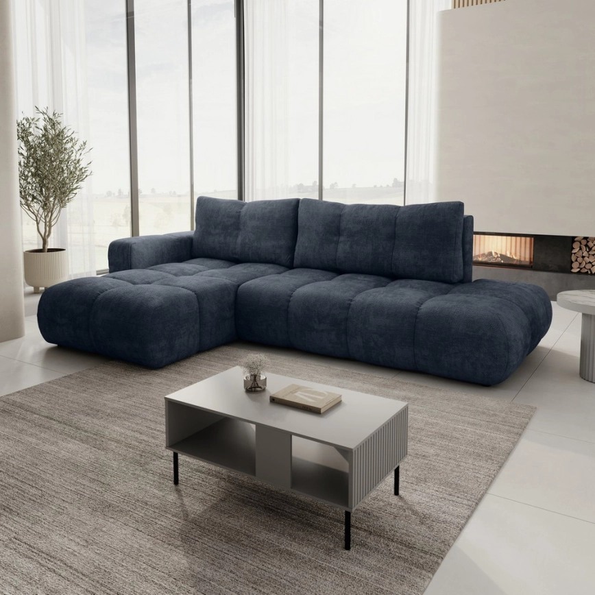 Canapé d'angle convertible rembourré ALMADA en L avec coffre de rangement, version gauche, bleu