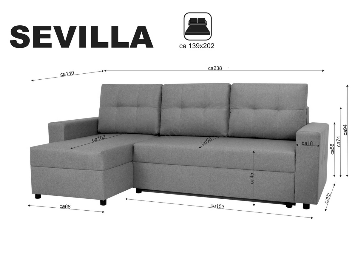 Canapé d'angle universel avec fonction couchage et espace de rangement SEVILLA anthracite