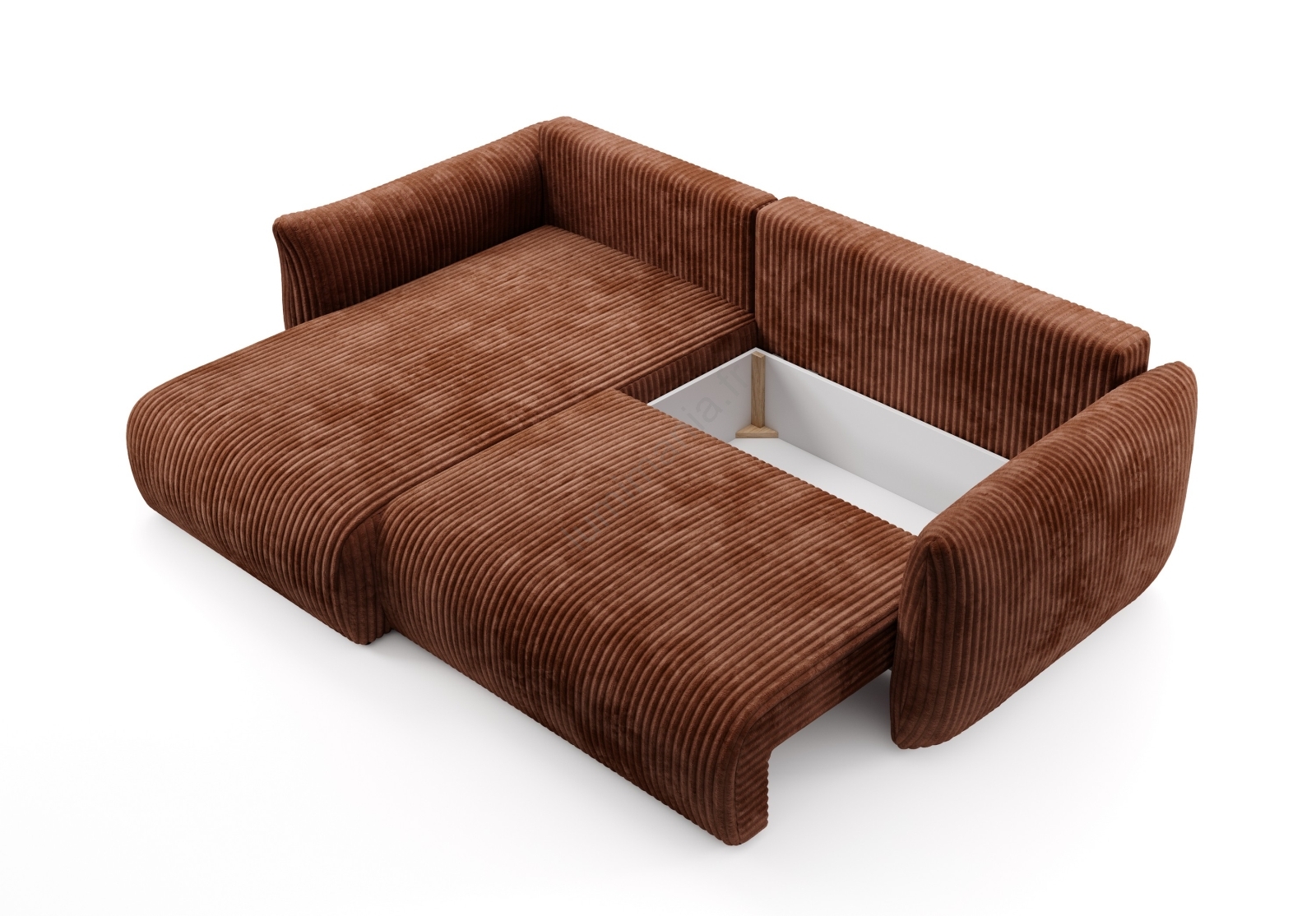 Canapé d'angle réversible convertible en L FRIDA marron avec coffre de rangement