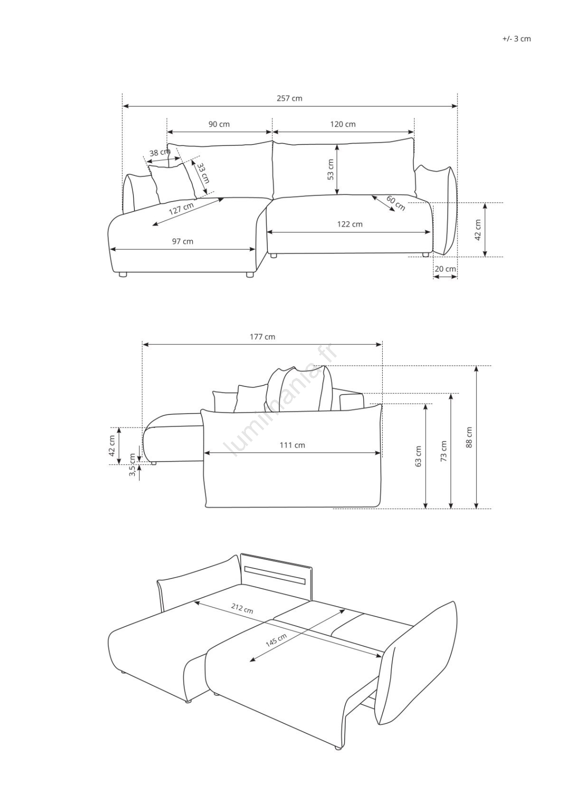 • Des pieds élégants (hauteur 3,5 cm) confèrent au canapé un look moderne tout en assurant stabilité et longue durée de vie.