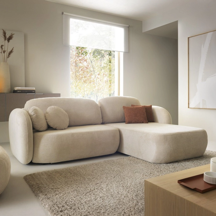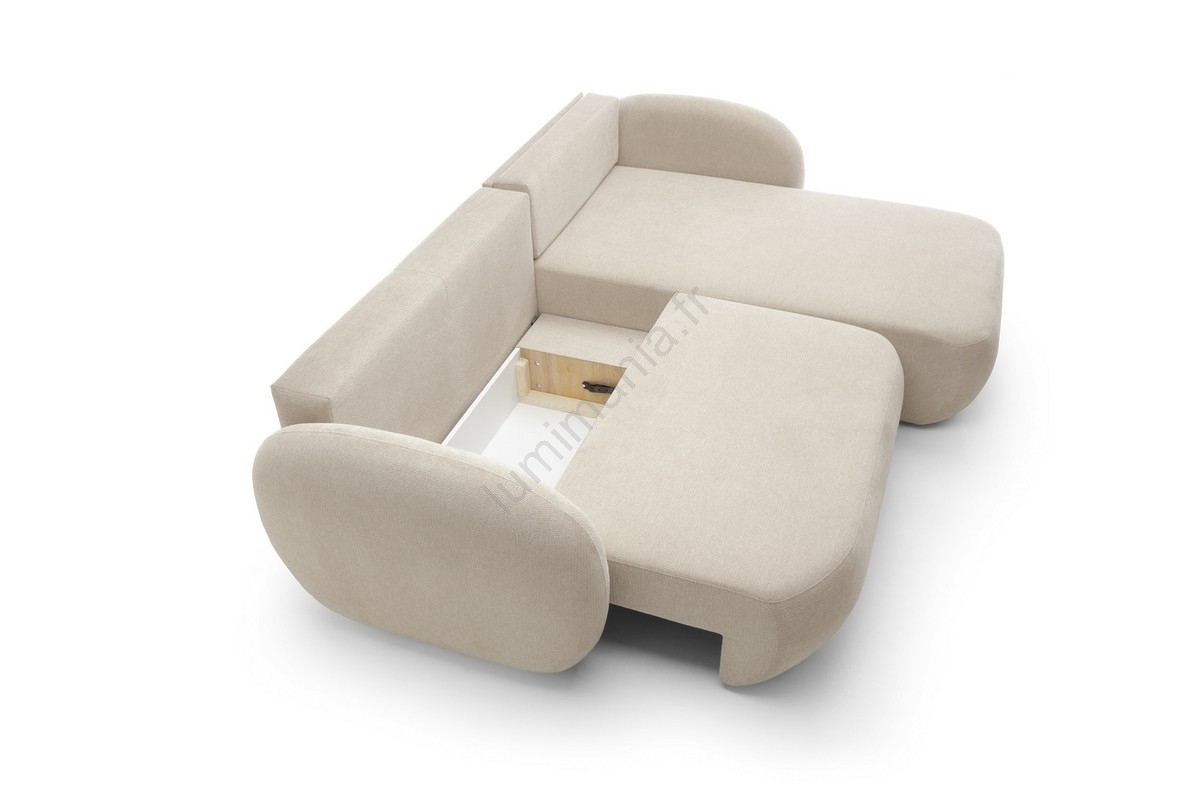 Canapé d'angle convertible en L OLBIA avec coffre de rangement, version droite, beige