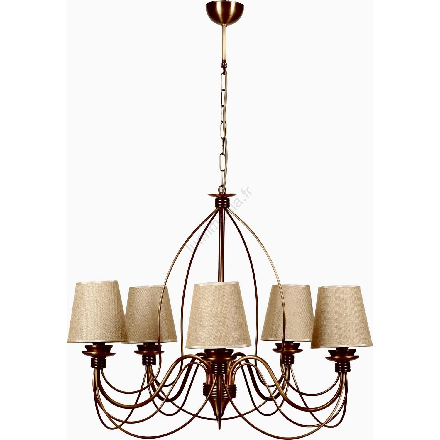 Lustre à chaîne CLASSIC 5xE14/40W/230V bronze/beige caractérise un design agréable et fonctionnel.  Une ampoule à culot E14 convient pour ce luminaire. Ici, vous pouvez acheter d'autres ampoules à des prix avantageux. Vous aurez un ajout intéressant dans votre intérieur.