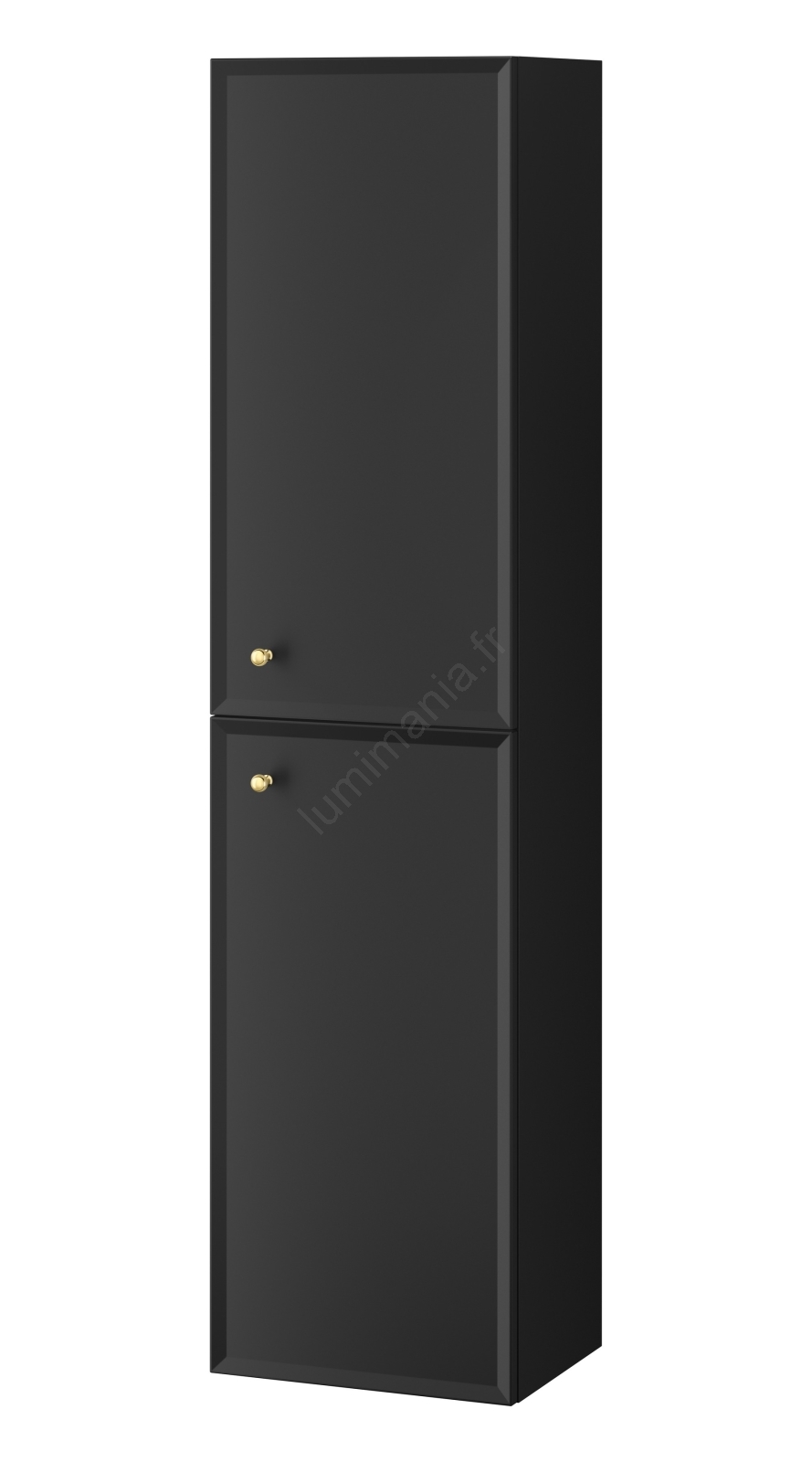 • La façade, le corps et les trois étagères intérieures du meuble sont fabriqués en panneau de particules de 16 mm, laqué noir mat.