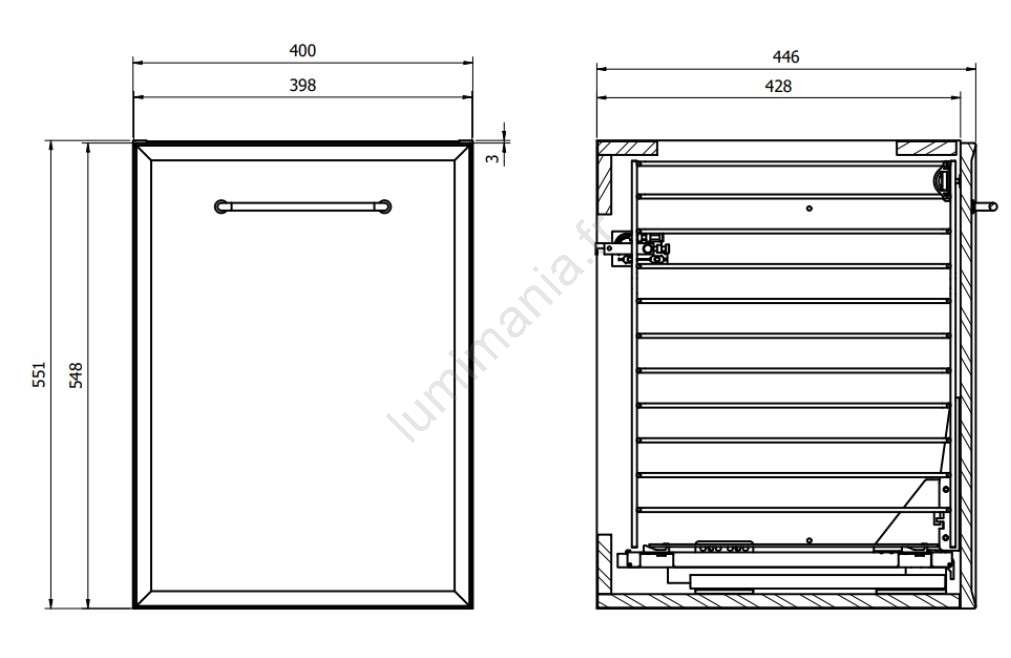 • Les poignées des tiroirs ne sont pas incluses, elles doivent être achetées séparément, elles sont disponibles en trois finitions (argent, noir et doré).