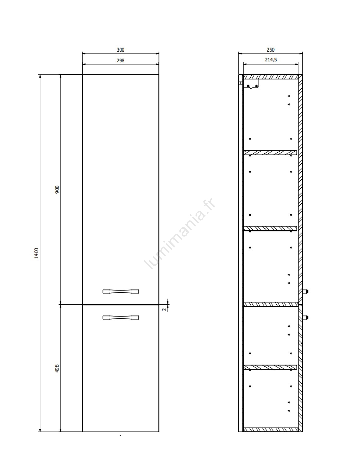 • La façade, le corps et les étagères intérieures de la colonne sont fabriqués en panneau de particules de 16 mm laqué blanc.