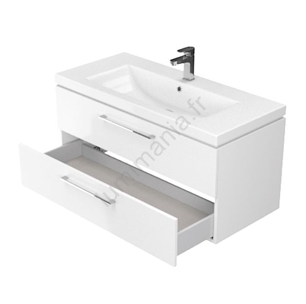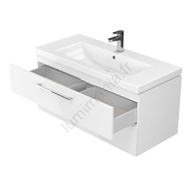 • Cette armoire suspendue de salle de bain est livrée avec un lavabo en céramique.