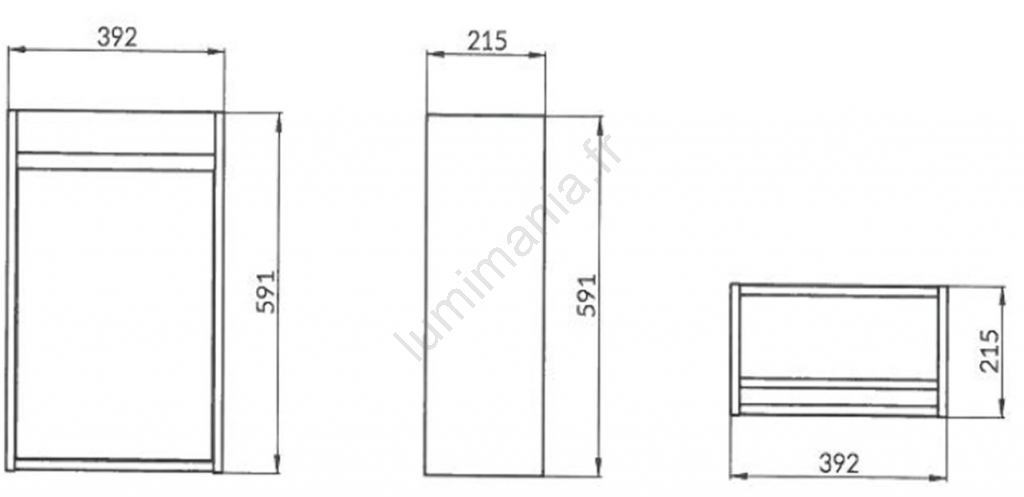 • Le devant et la structure de l'armoire sont fabriqués en panneau de particules de 16 mm avec une finition laquée blanche.