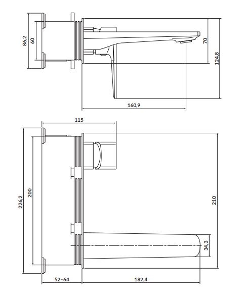 • Mitigeur mural pour lavabo à encastrer.