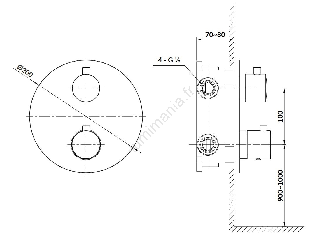 • Équipé d’une tête thermostatique de haute qualité avec un inverseur de débit pour sortie eau/poignée de douche.