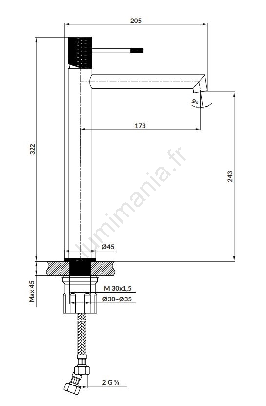 • Les flexibles de raccordement de 60 cm sont inclus dans le colis.