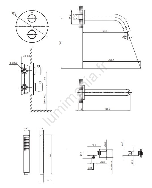 • Cet ensemble de baignoire avec robinet thermostatique encastré est un ajout élégant à toute salle de bains.