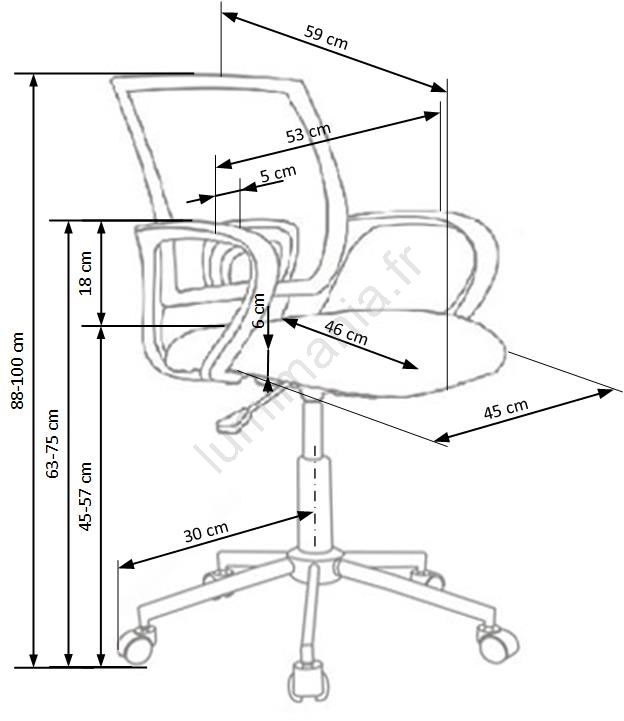 • Grâce au réglage de la hauteur d'assise, la chaise s'adapte facilement à votre morphologie et à votre style d'assise.