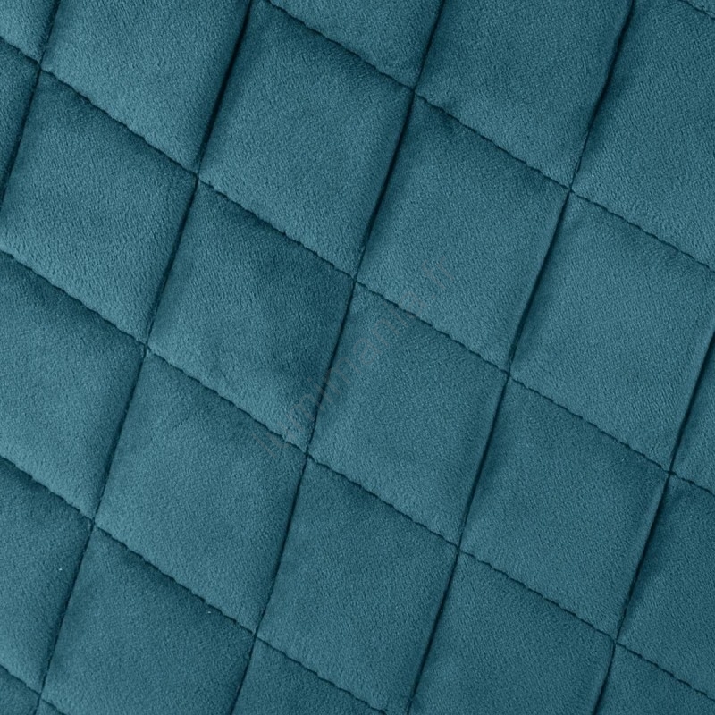 • Fauteuil en velours bleu avec des pieds en métal noir.