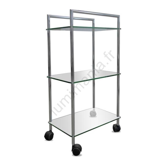 • Chariot de salle de bains moderne au fini argenté élégant.
