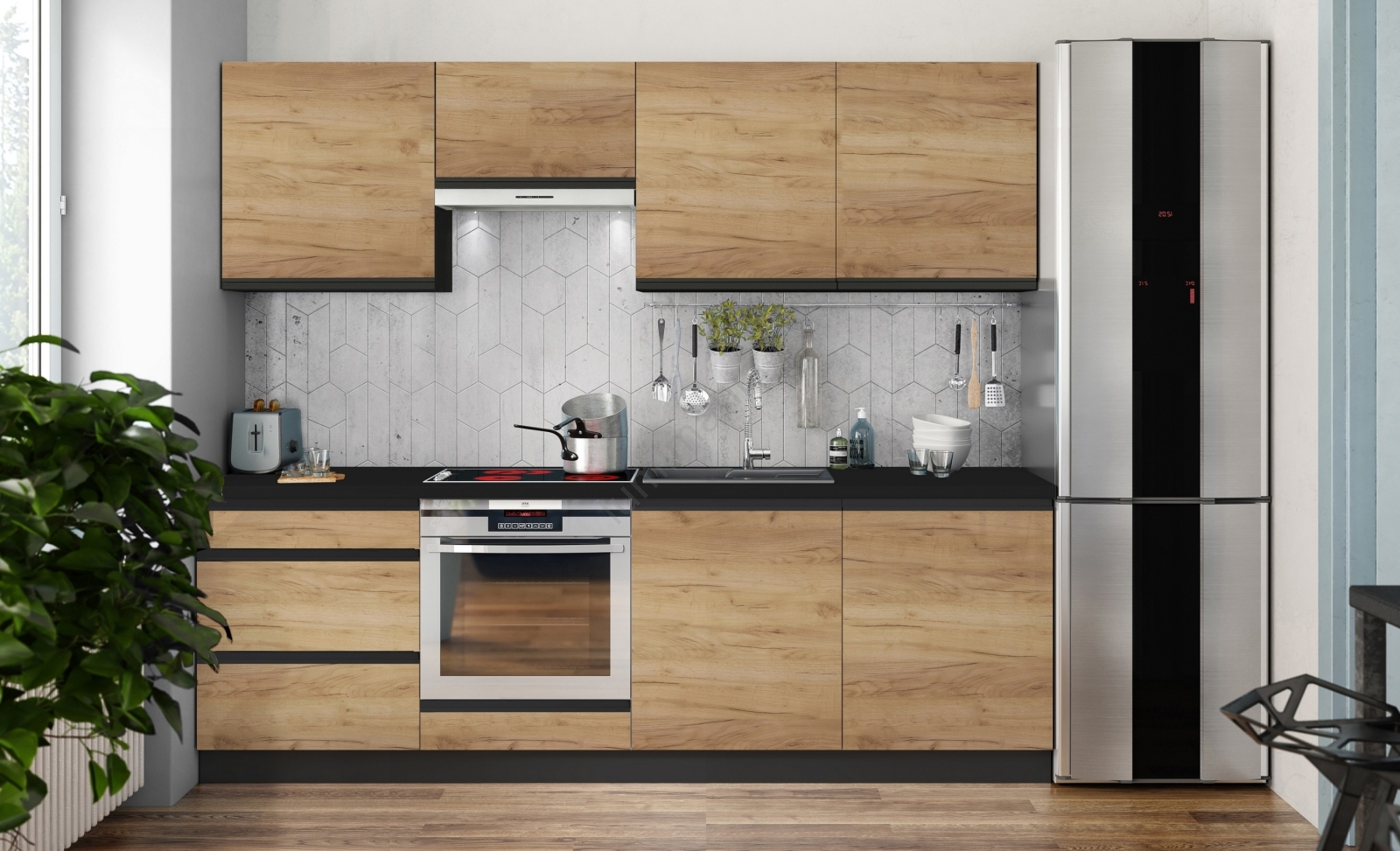 Meuble de cuisine MARINA 240 cm, finition chêne craft