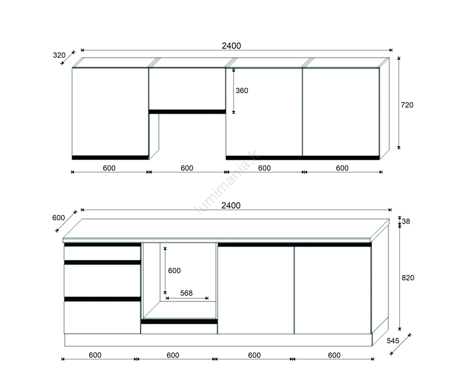 • L'agencement des éléments est modulaire, vous pouvez personnaliser la cuisine selon vos préférences.