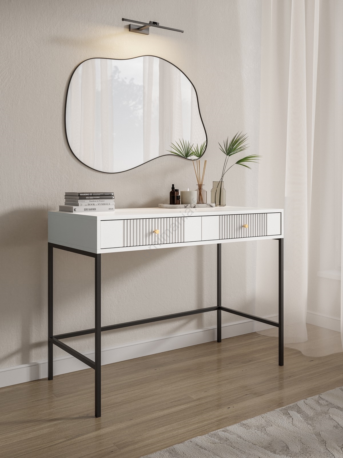 • Elle possède deux tiroirs ornés de cannelures verticales pour un effet visuel raffiné.