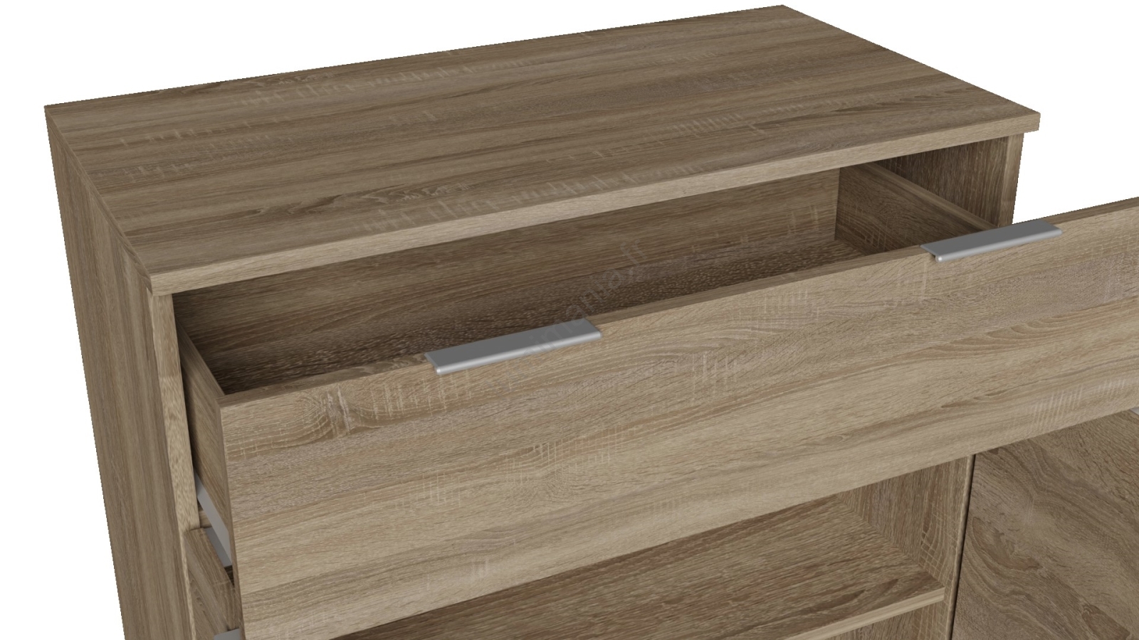 • Des poignées élégantes et des lignes simples créent une esthétique moderne, idéale pour les salons contemporains.